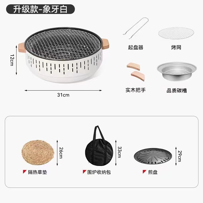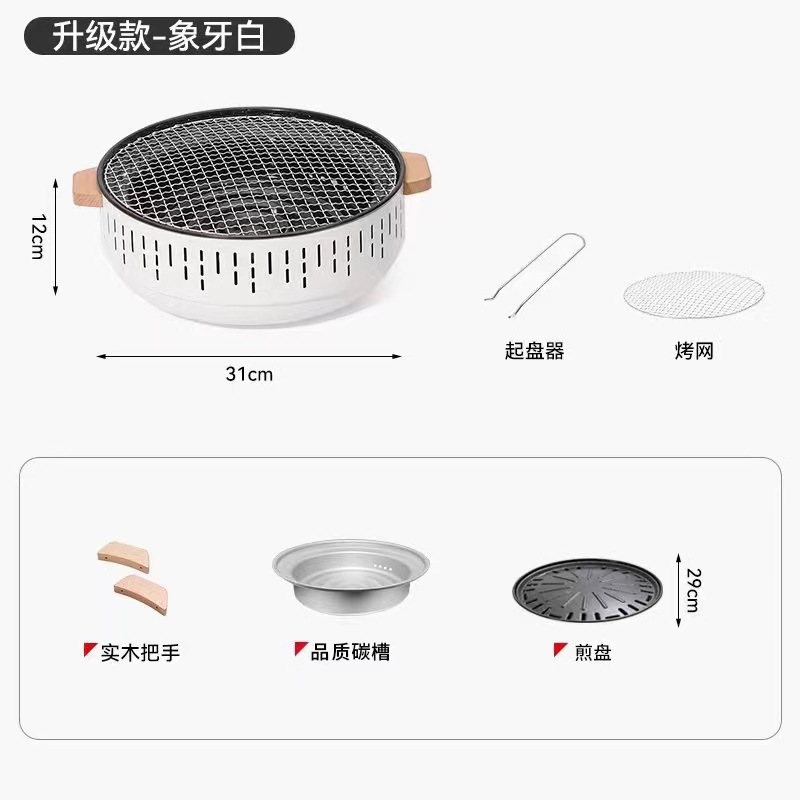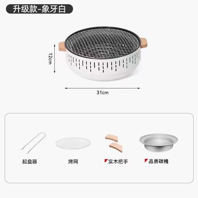 • 흰색 난로 원목 손잡이 + 접시 리프터 + 바비큐 네트 + 프라이팬