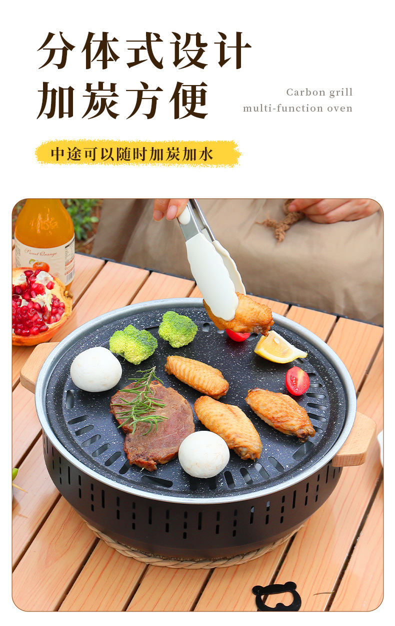 • 싱크대 + 접시 리프터 + 바비큐 네트 + 프라이팬이 포함된 검은색 난로 원목 손잡이