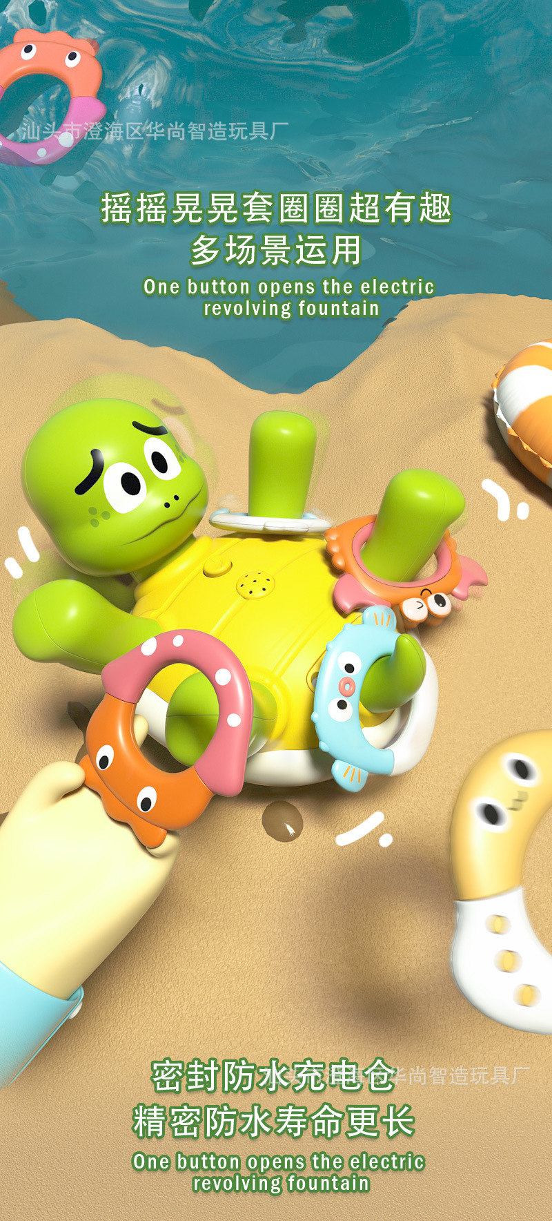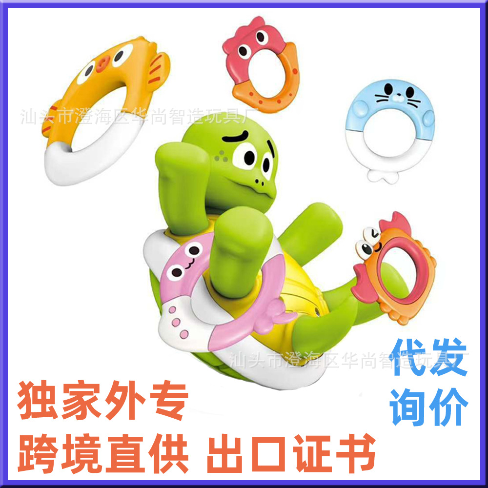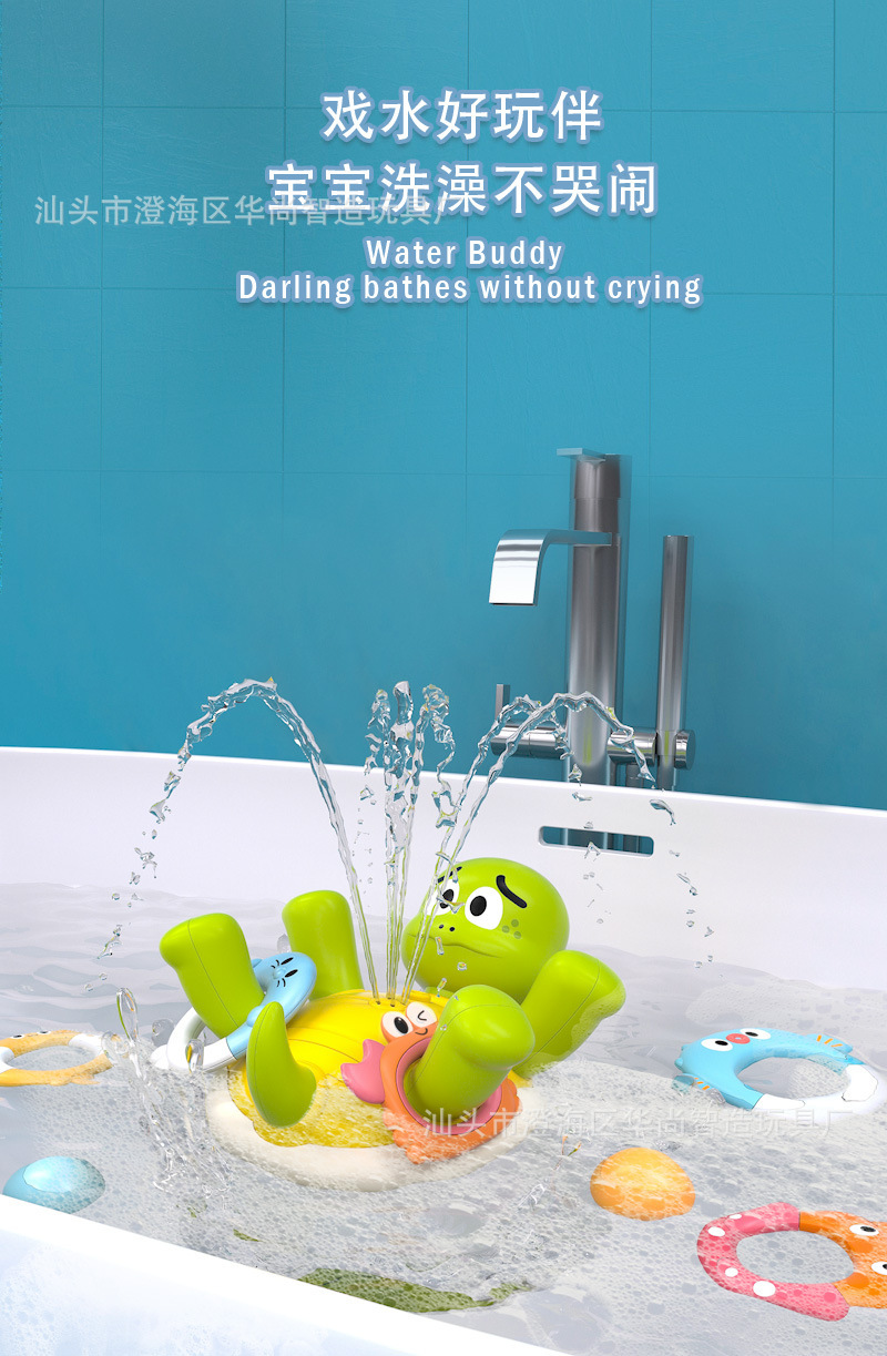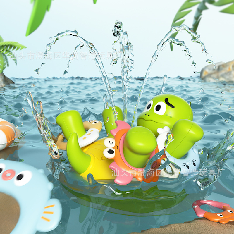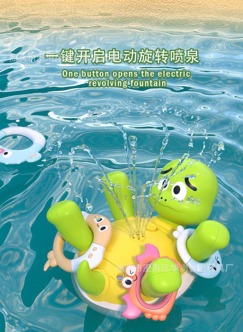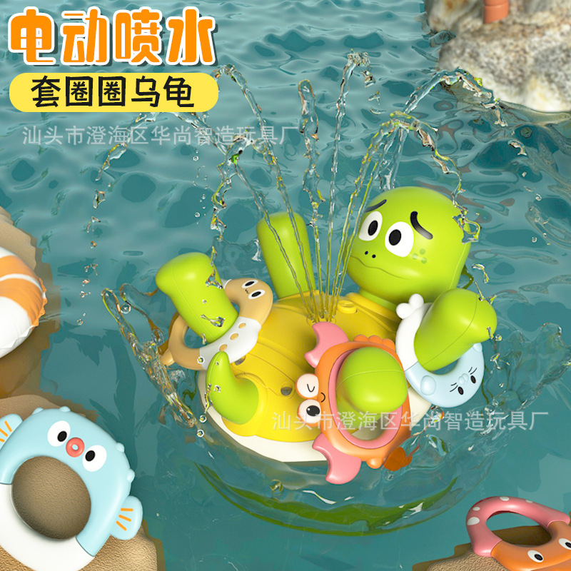 국경 뜨거운 판매 전기 거북이 장난감 아기 목욕 욕실 장난감 전기 물 스프레이 음악 만화 반지