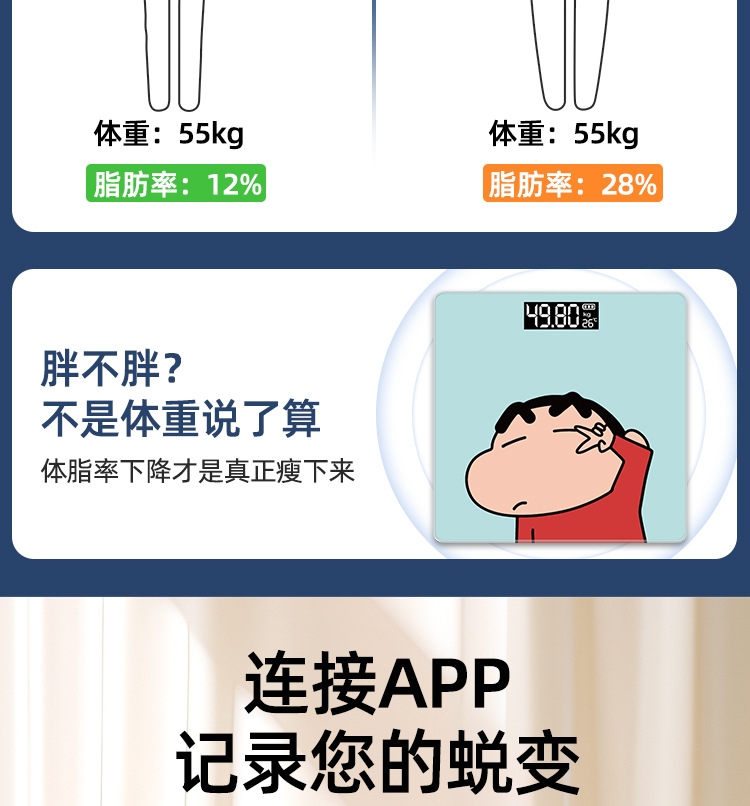 대외 무역 국경 간 블루투스 체중계 공장 도매 및 배송, 충전식 전자 체중계, 블루투스 가정용 소형 체지방 측정기
