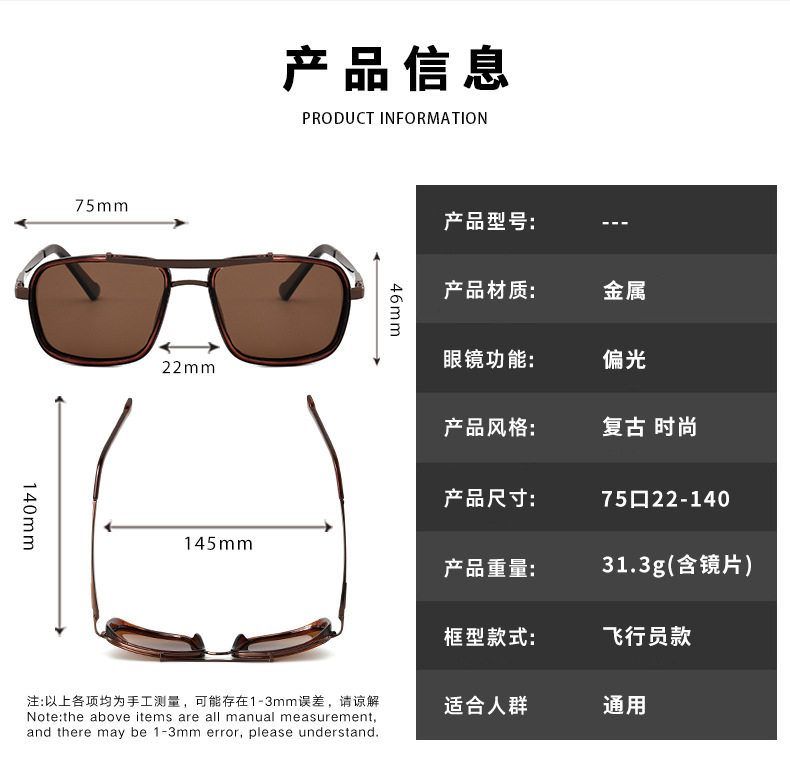 새로운 복고풍 두꺼운 더블 빔 클래식 펑크 스타일 남성 편광 선글라스 패션 자외선 차단 선글라스스토어 가기