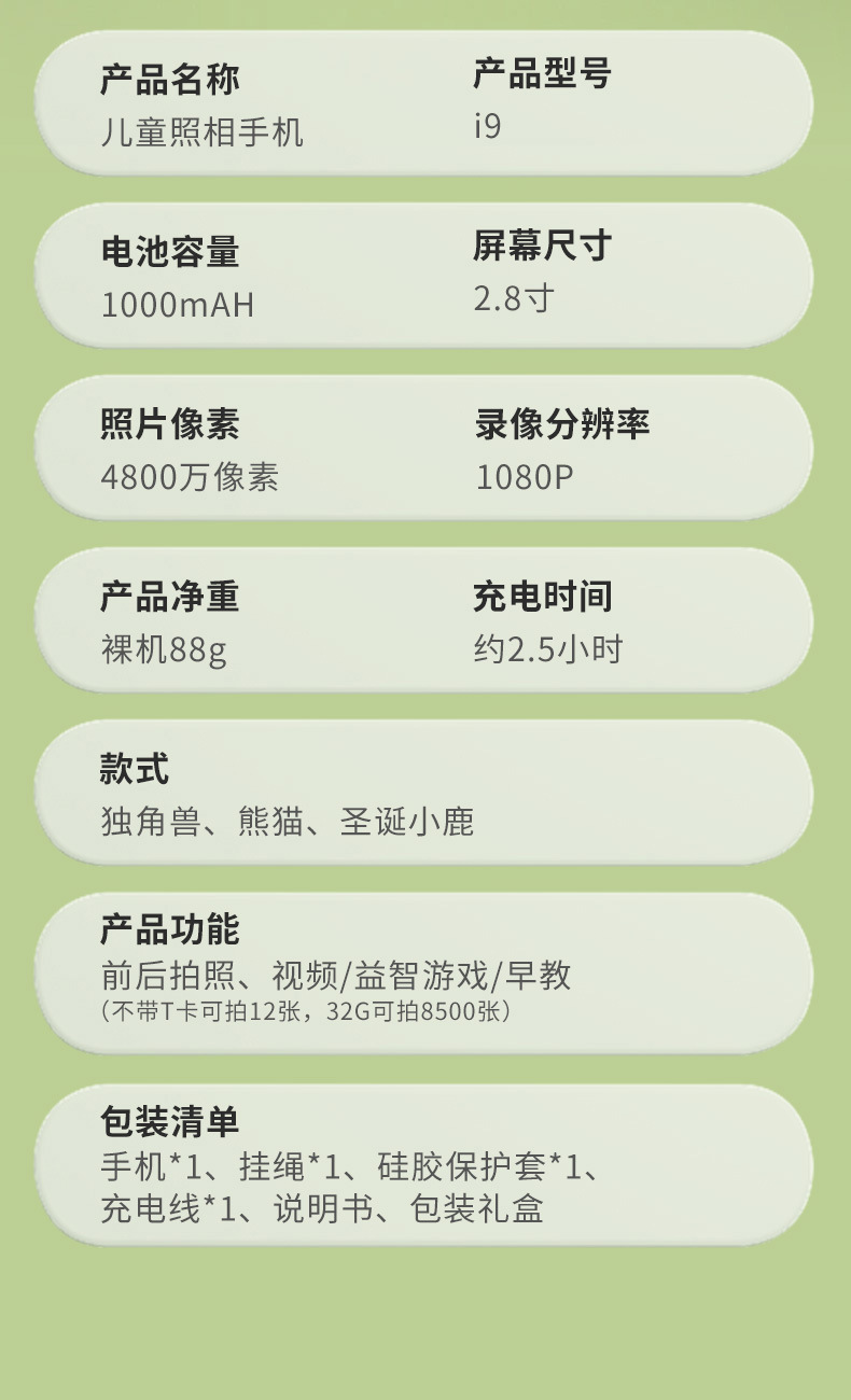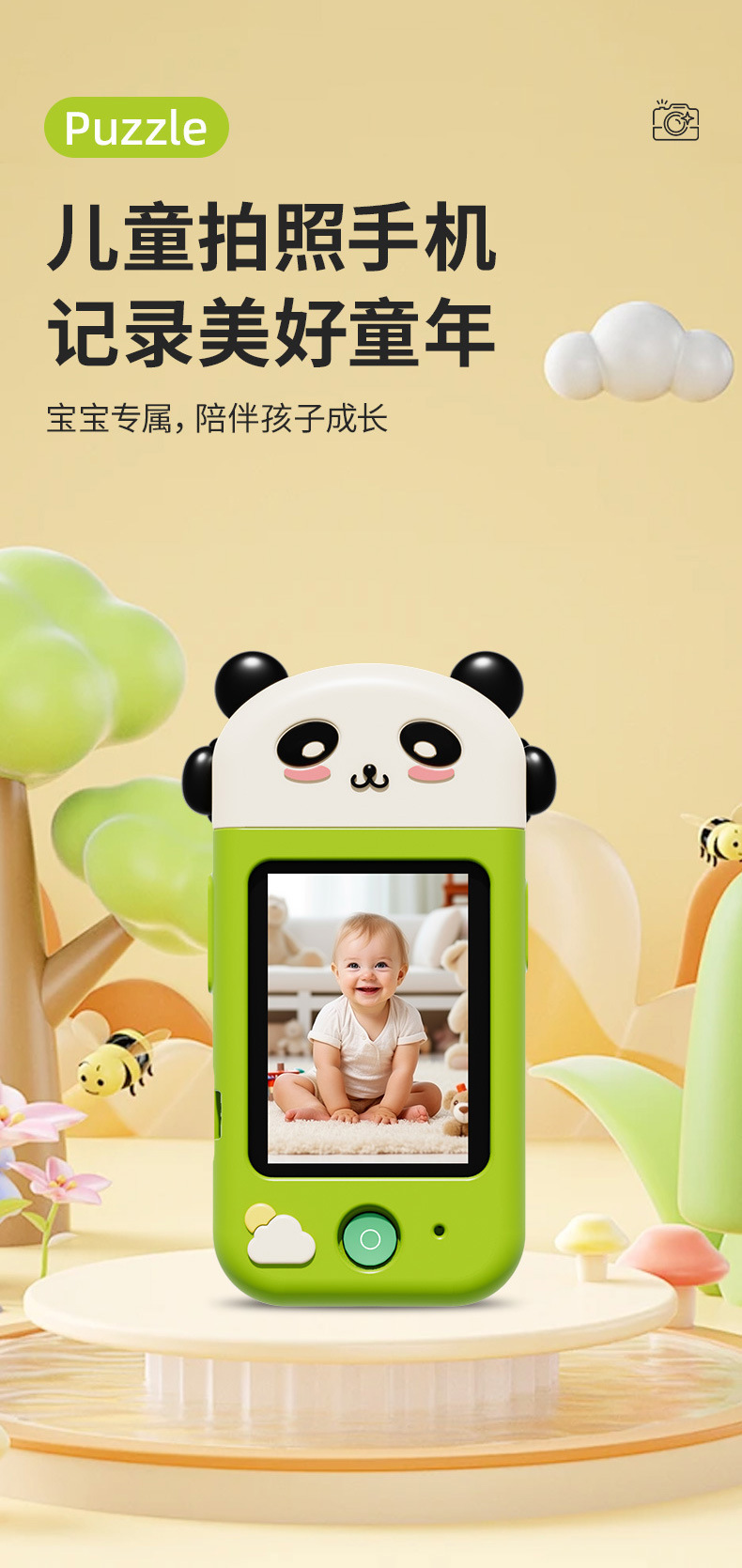 만화 어린이 카메라 귀여운 팬더 유니콘 HD 픽셀 회전 렌즈 크리스마스 새해 생일 선물스토어 가기