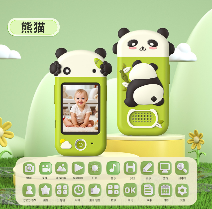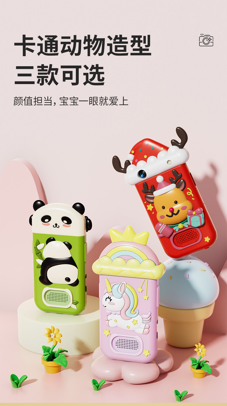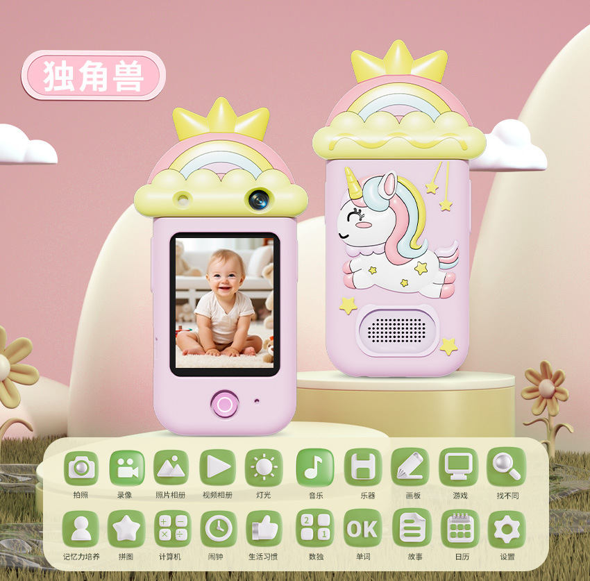 만화 어린이 카메라 귀여운 팬더 유니콘 HD 픽셀 회전 렌즈 크리스마스 새해 생일 선물