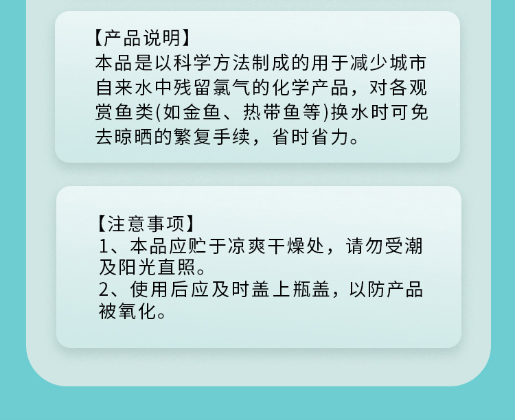 수족관용 수돗물, 피쉬레보 소스 공장 OEM 가공, 수조 염소 제거, 맞춤형 노일림, 물 교체 없음