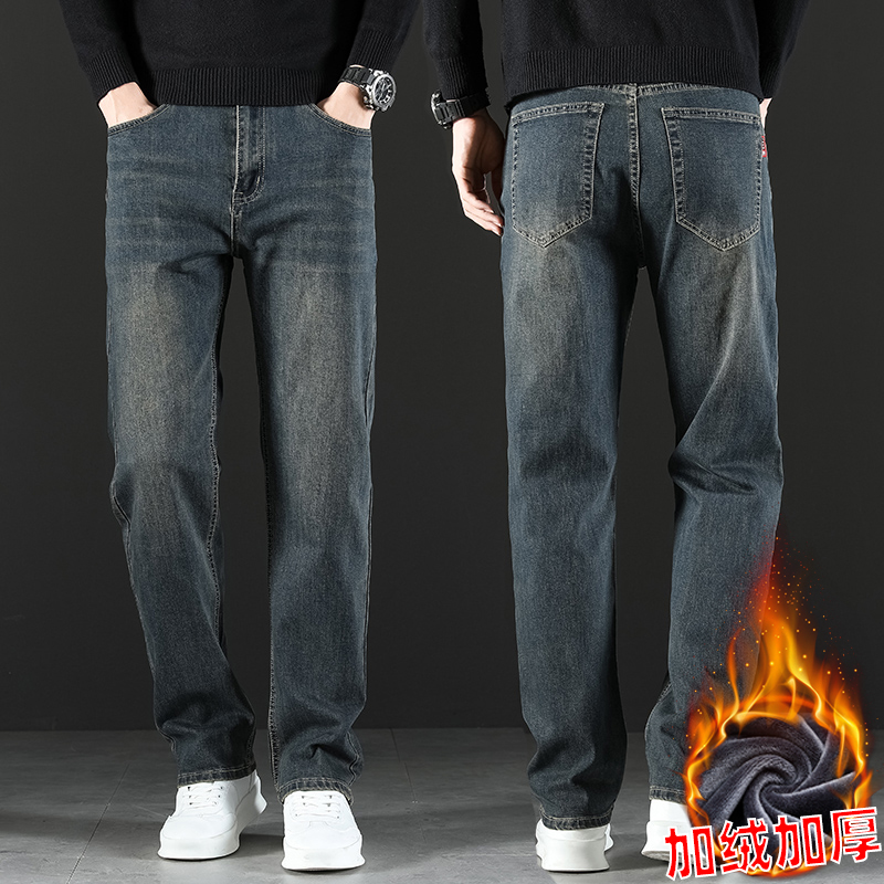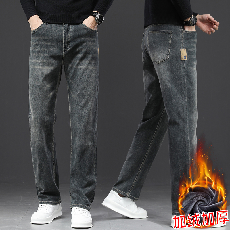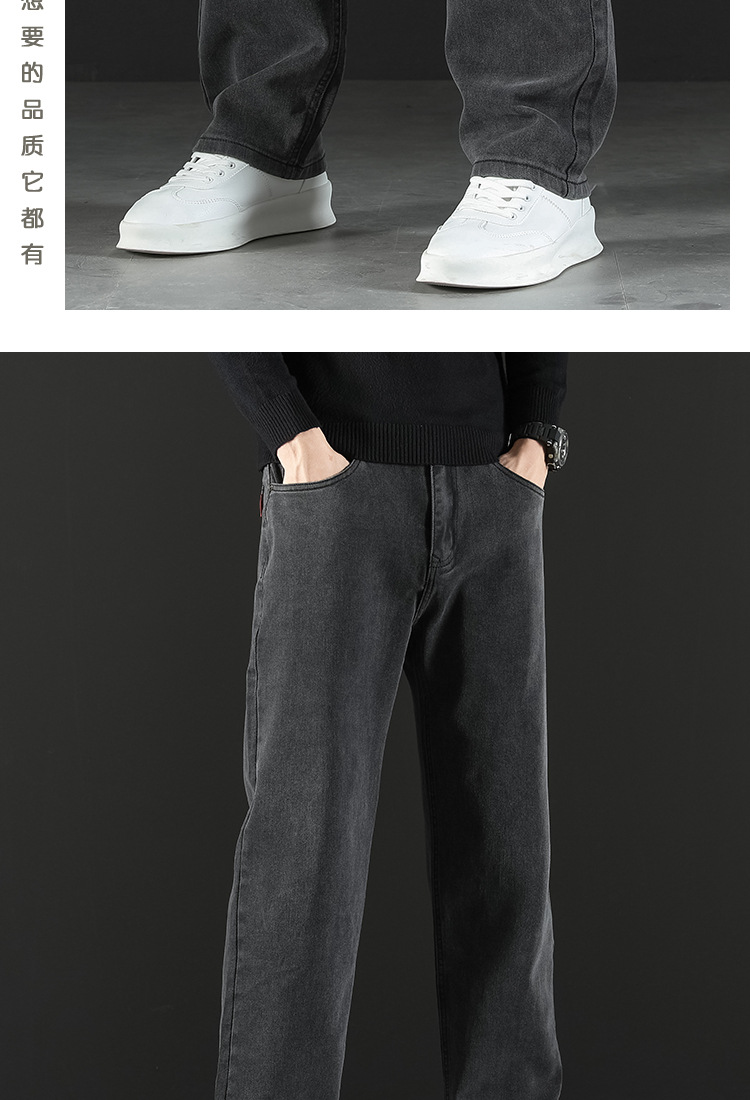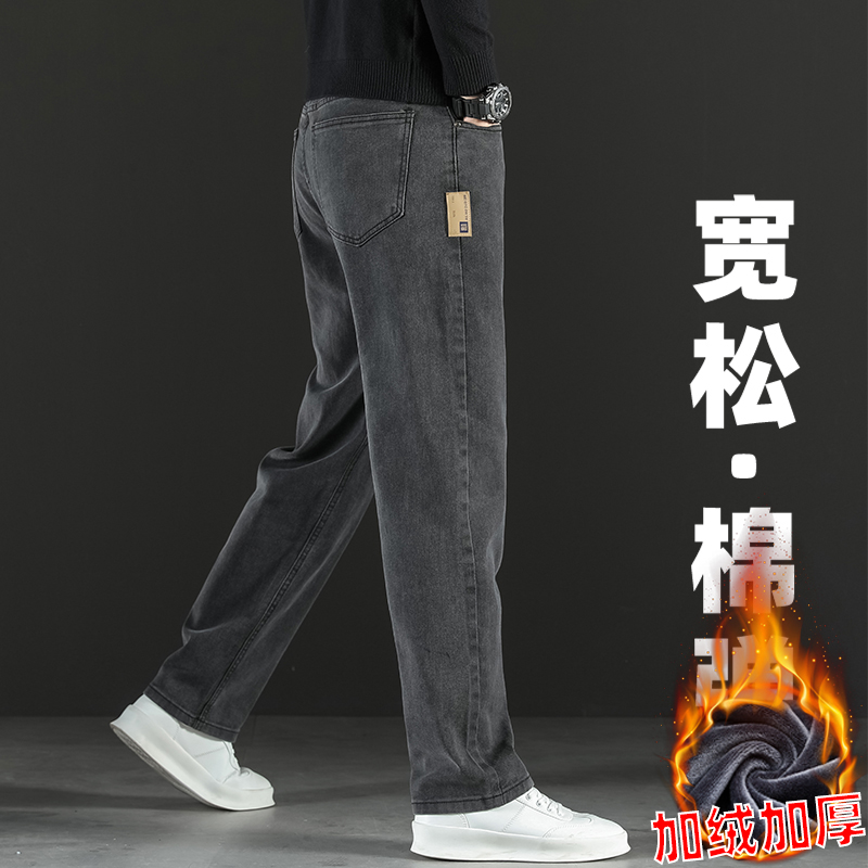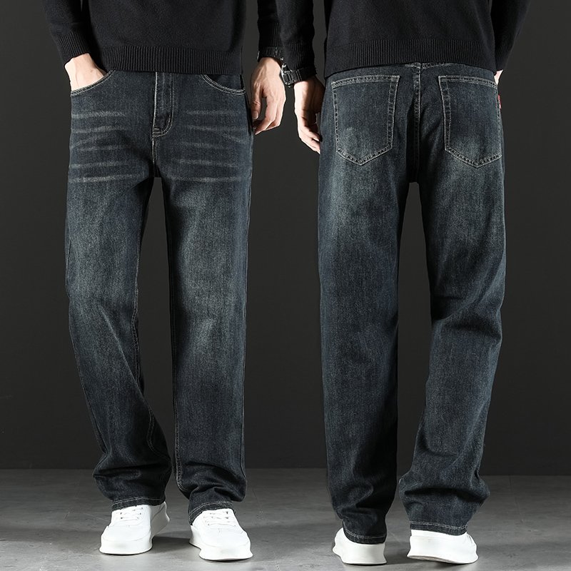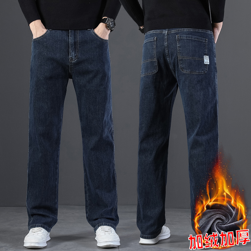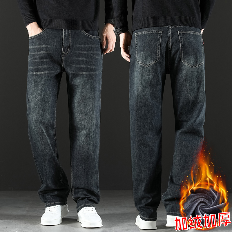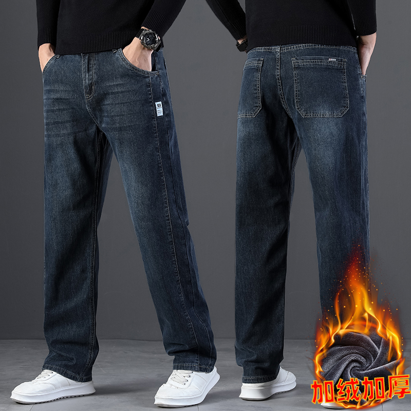 2024 새로운 겨울 하이 엔드 청바지 남자의 가을과 겨울 느슨한 스트레이트 와이드 다리 남자 바지 기모 캐주얼 바지스토어 가기