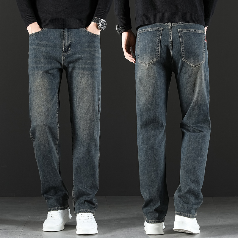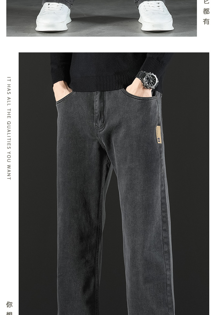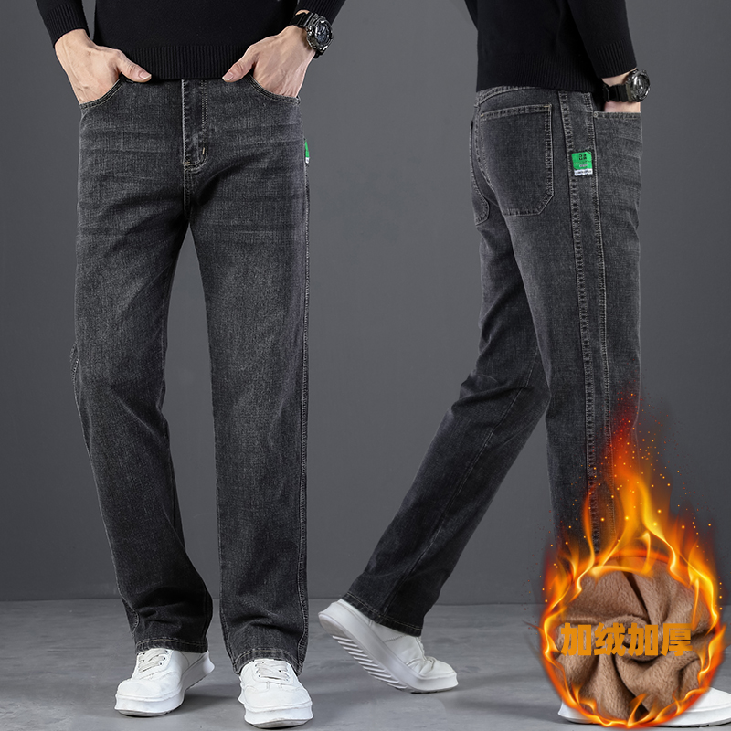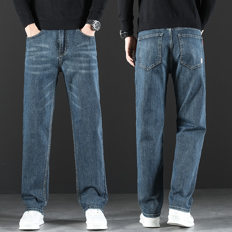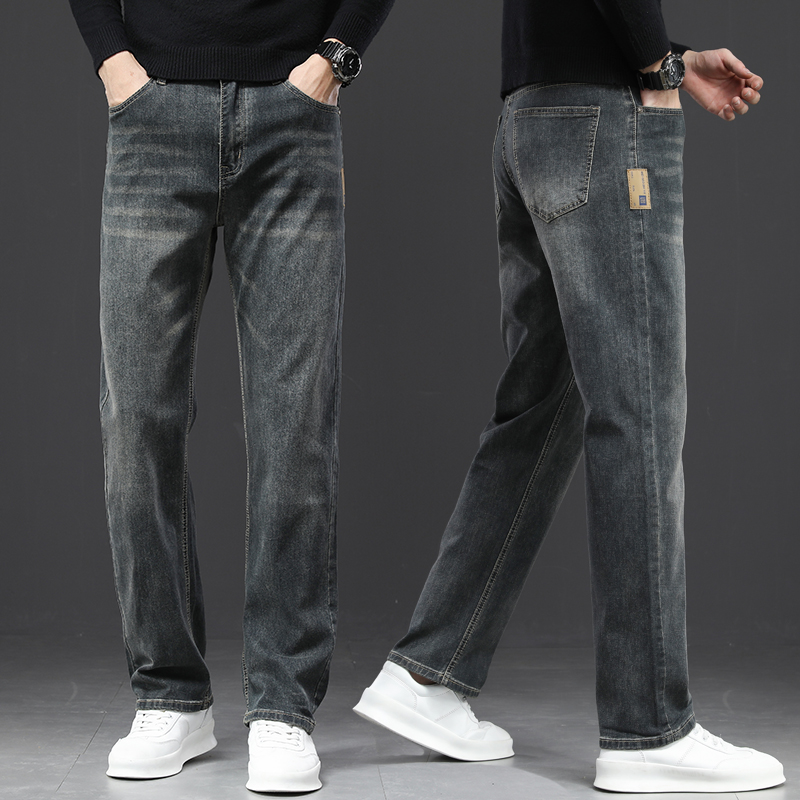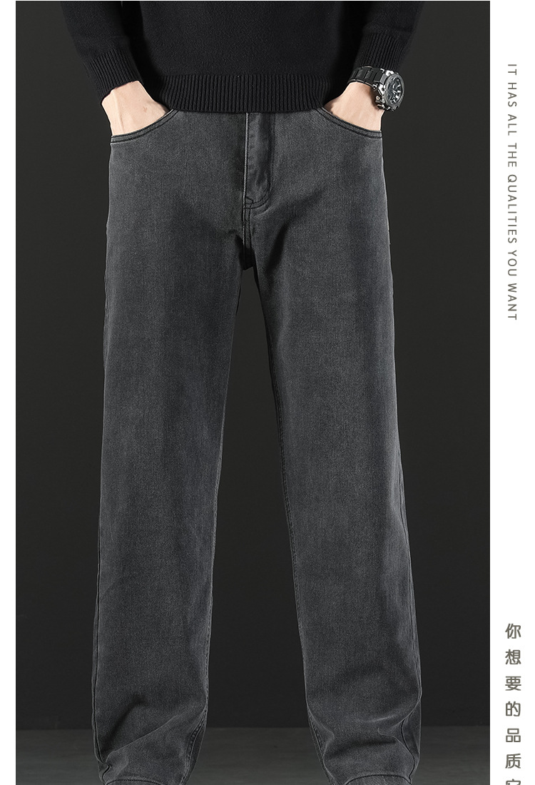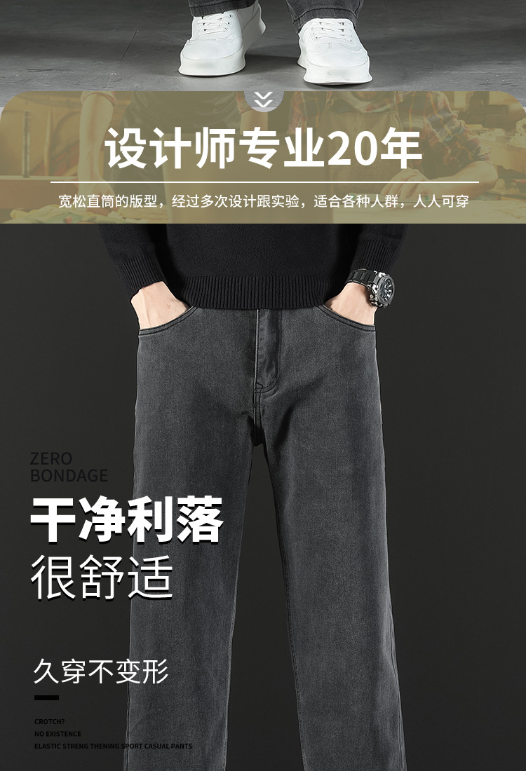 2024 새로운 겨울 하이 엔드 청바지 남자의 가을과 겨울 느슨한 스트레이트 와이드 다리 남자 바지 기모 캐주얼 바지스토어 가기