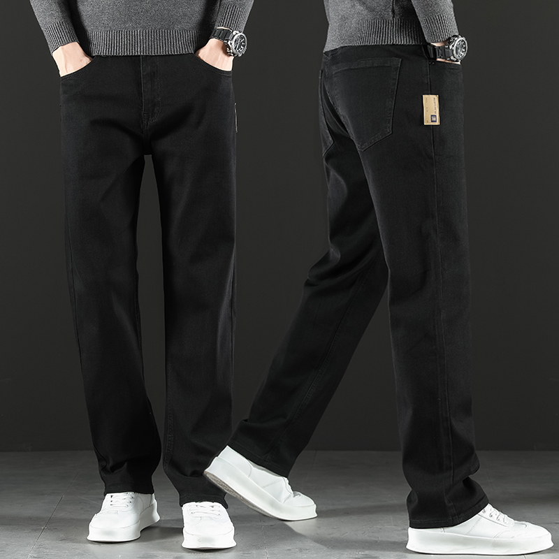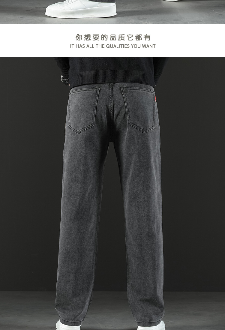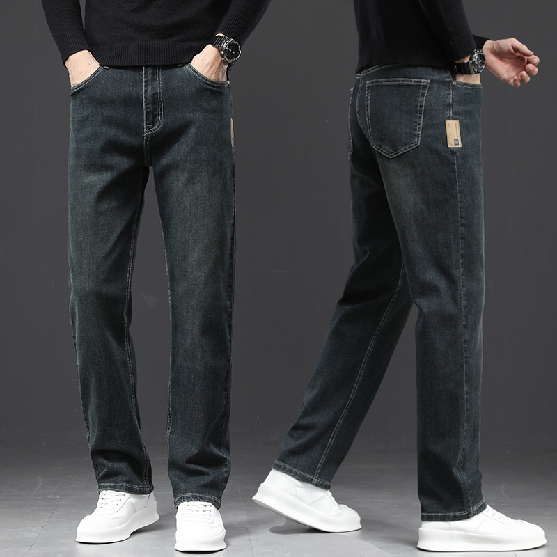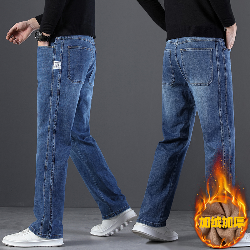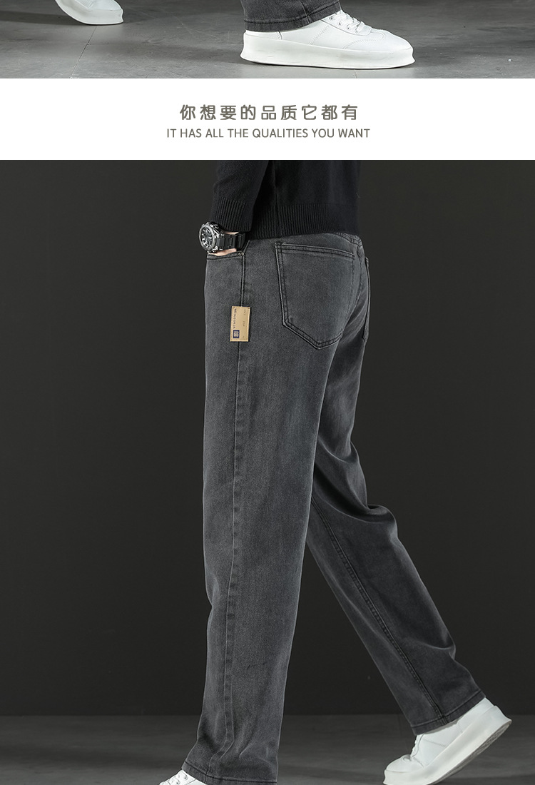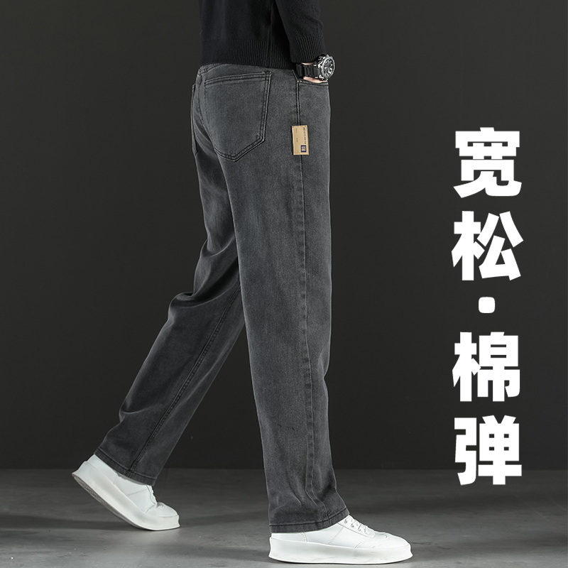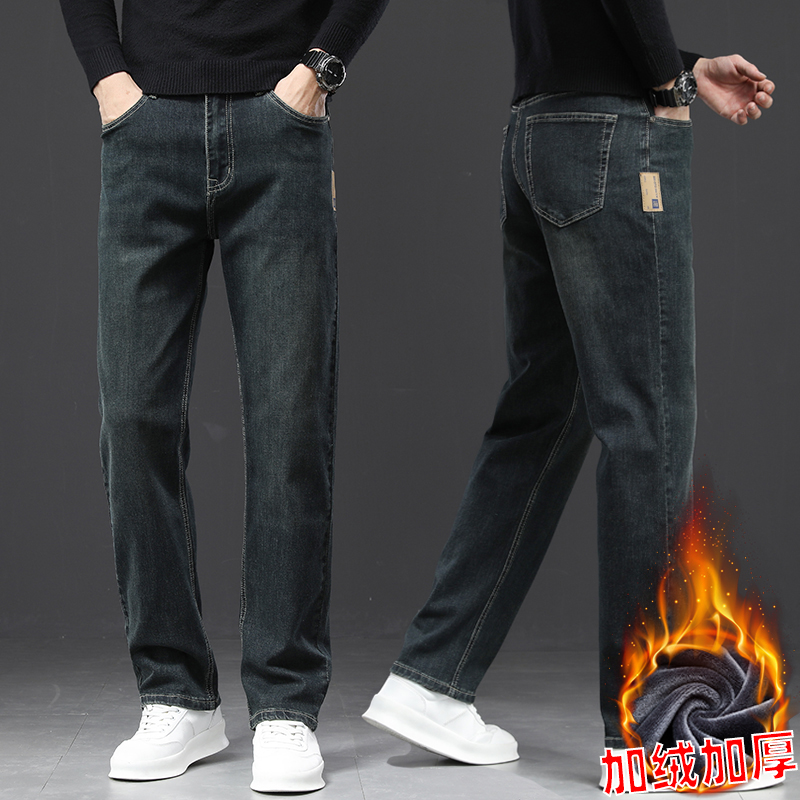 2024 새로운 겨울 하이 엔드 청바지 남자의 가을과 겨울 느슨한 스트레이트 와이드 다리 남자 바지 기모 캐주얼 바지스토어 가기