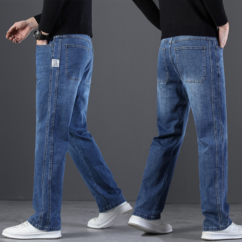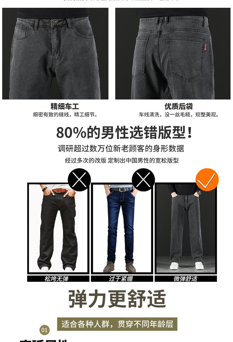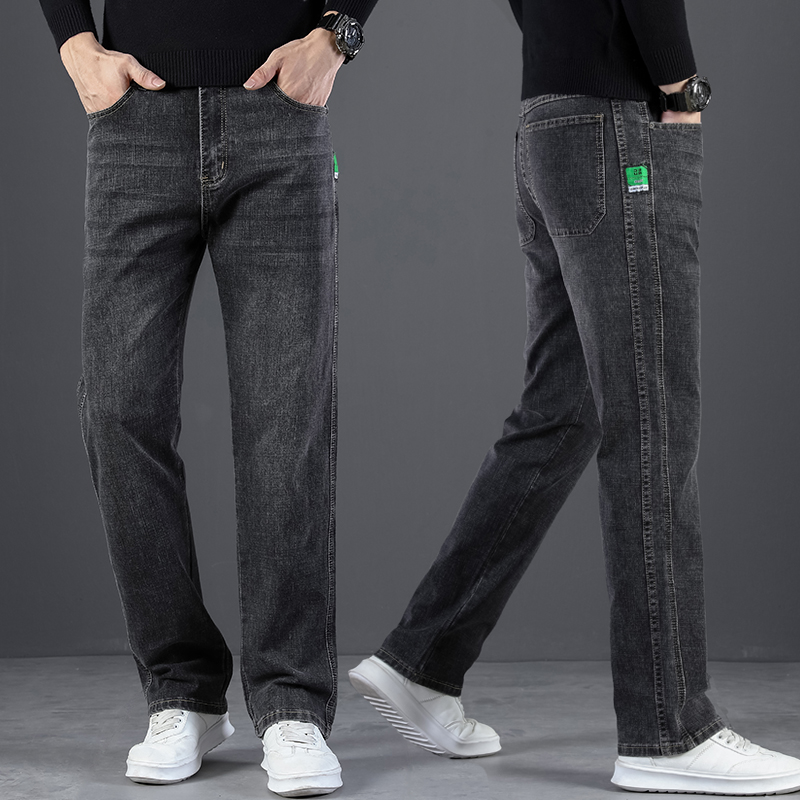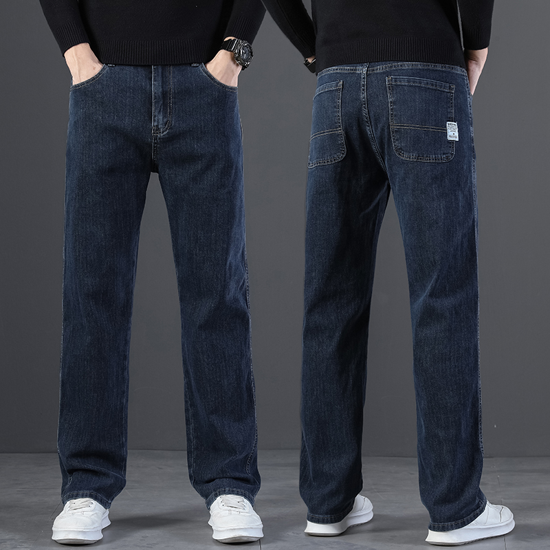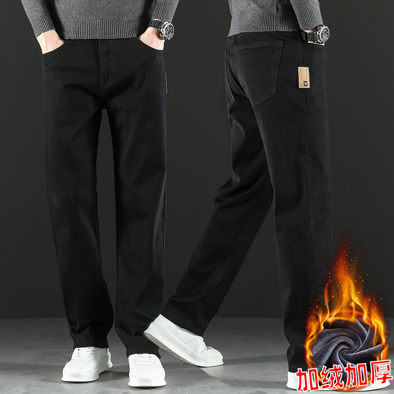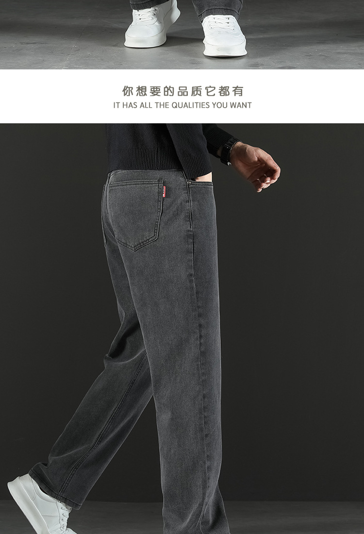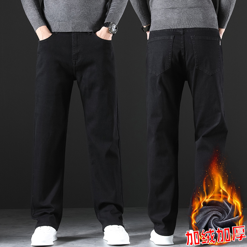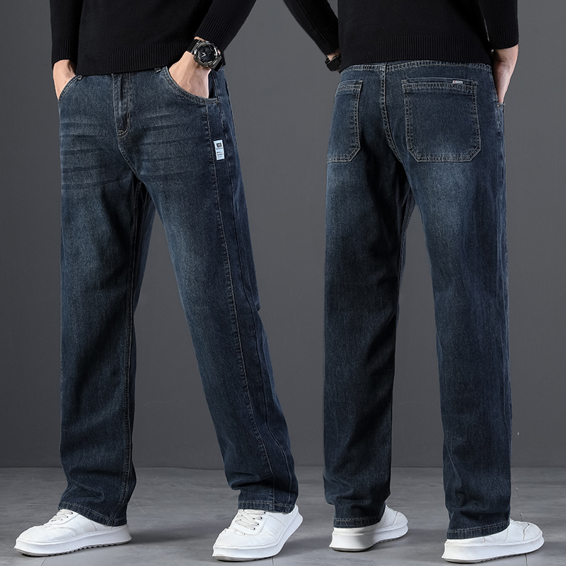 2024 새로운 겨울 하이 엔드 청바지 남자의 가을과 겨울 느슨한 스트레이트 와이드 다리 남자 바지 기모 캐주얼 바지스토어 가기