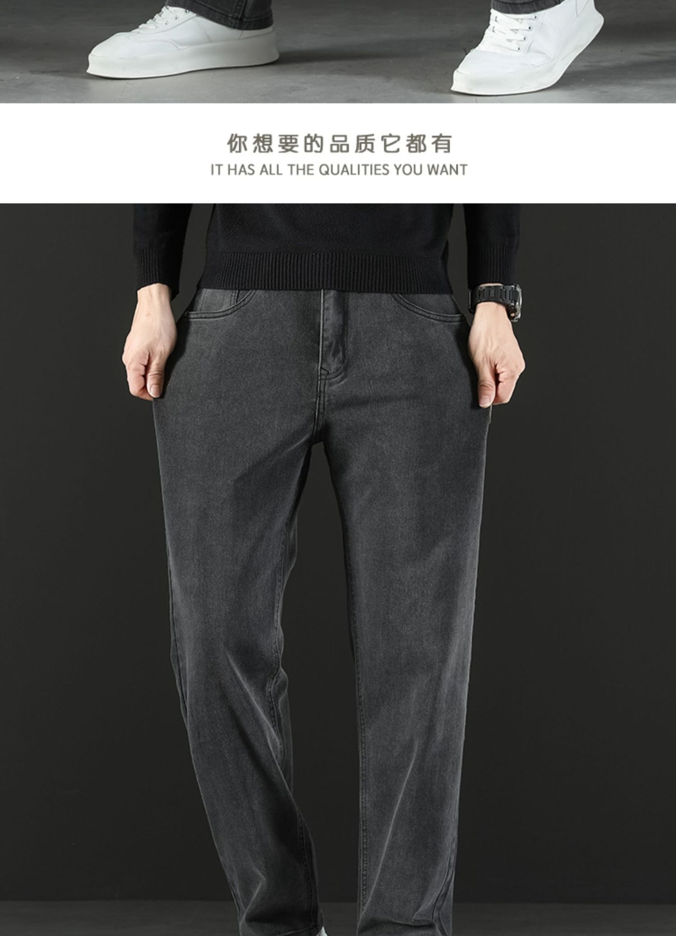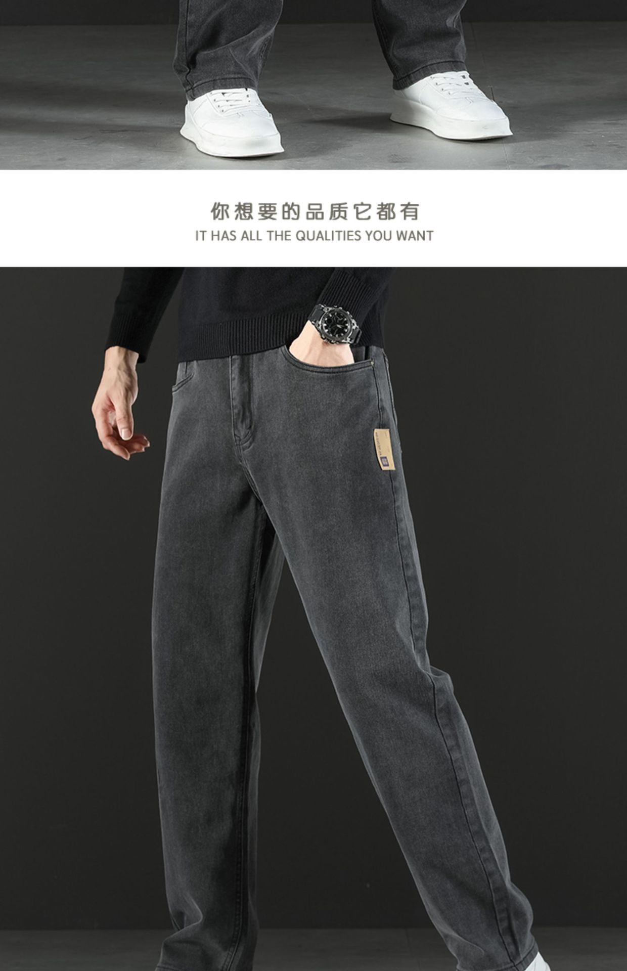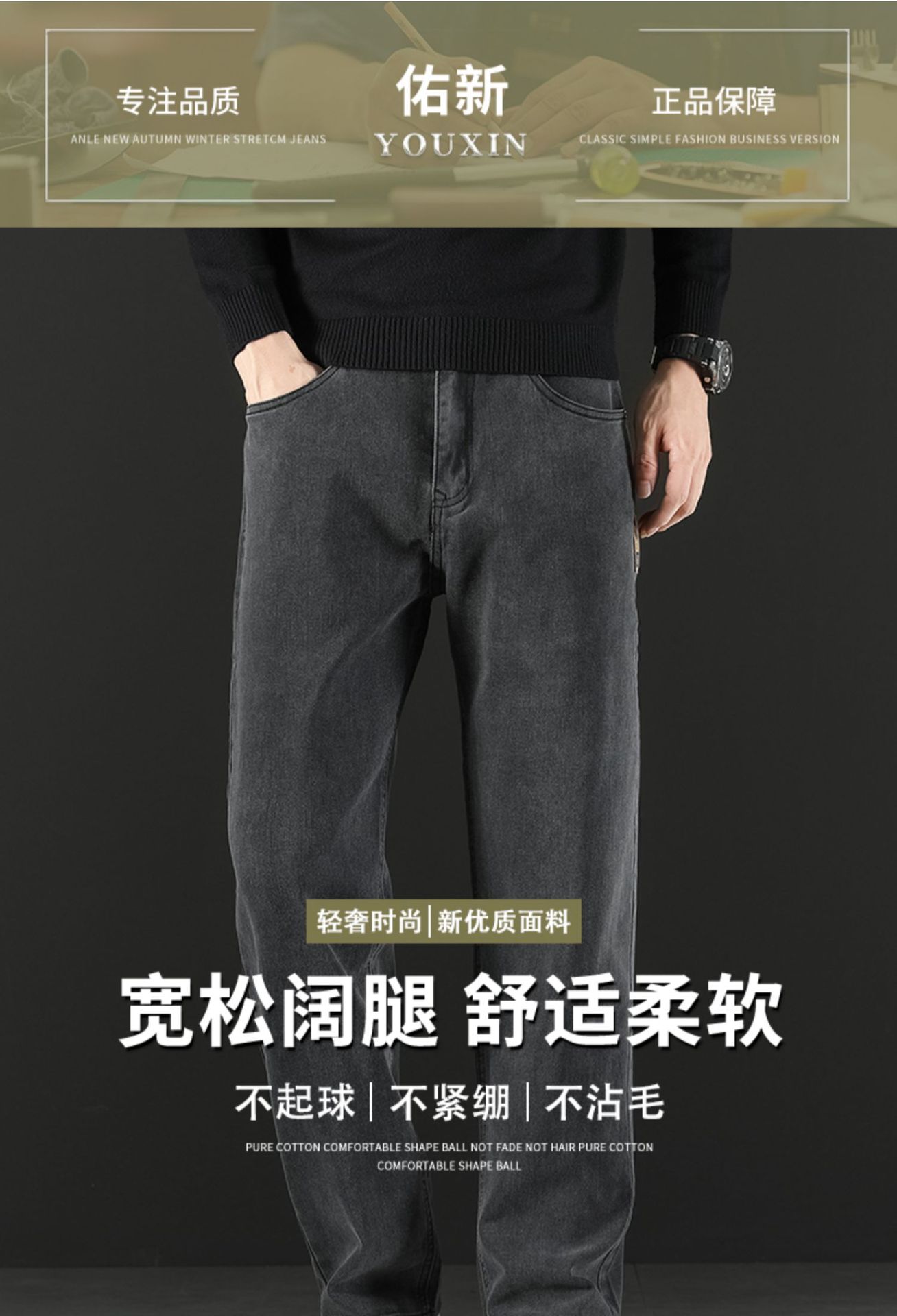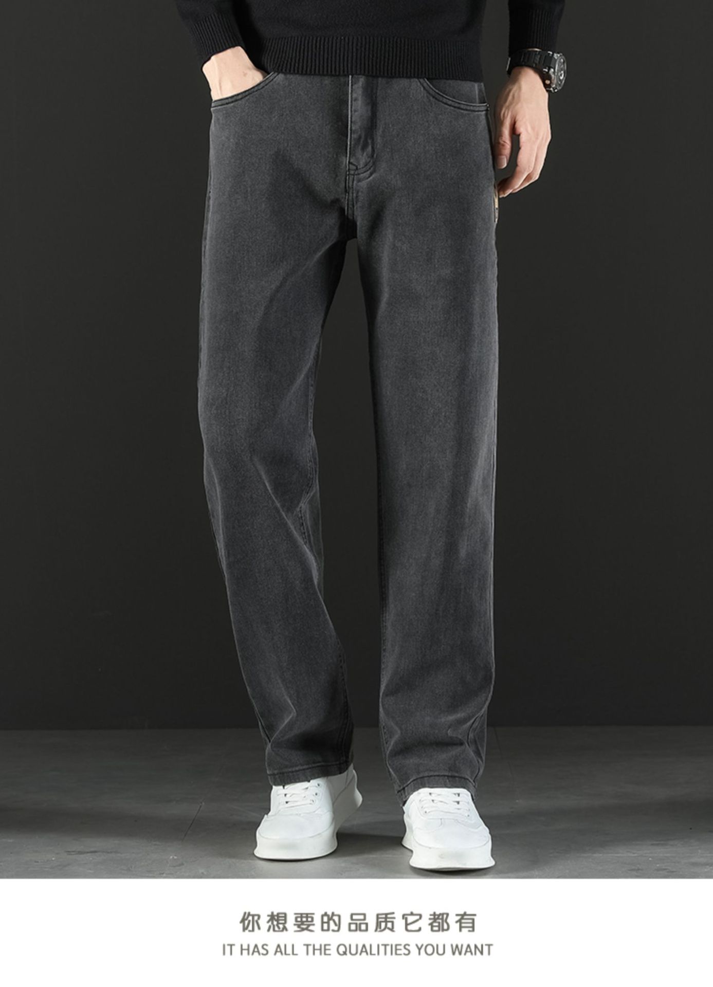 2024 새로운 겨울 하이 엔드 청바지 남자의 가을과 겨울 느슨한 스트레이트 와이드 다리 남자 바지 기모 캐주얼 바지스토어 가기