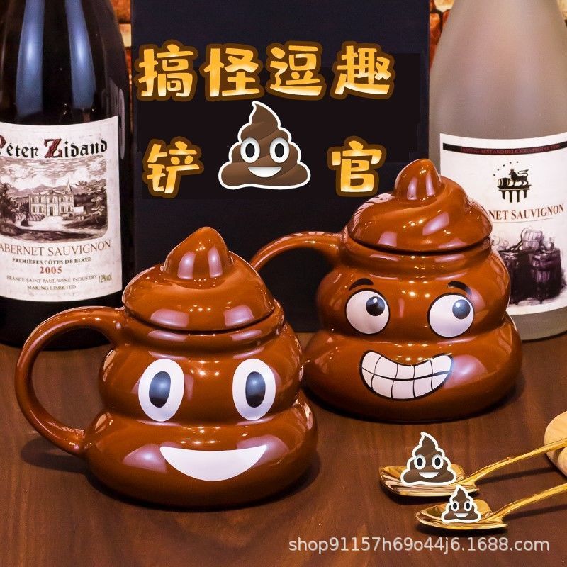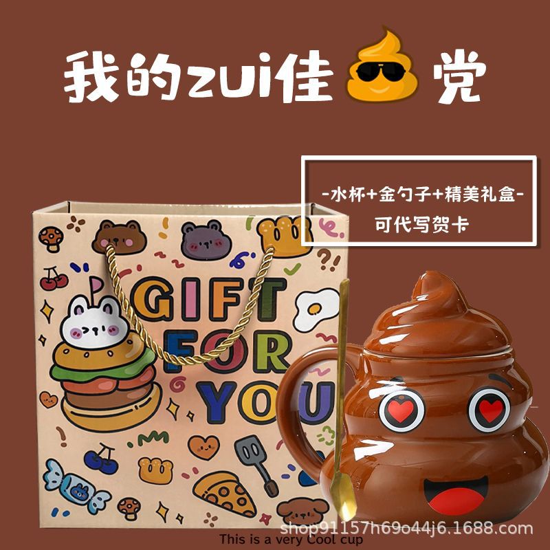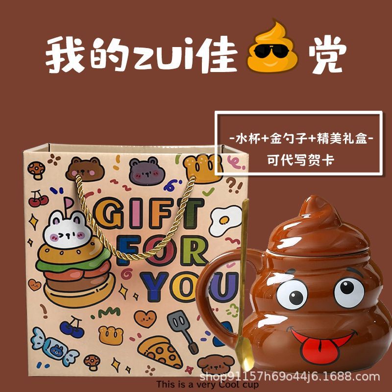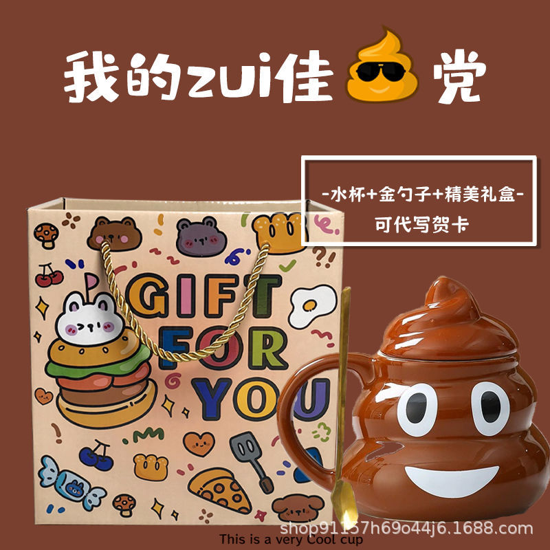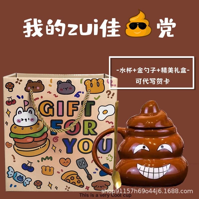 • 사랑스러운 똥 모양 머그컵, 선물용 선물 세트 (미니 금수저 포함)