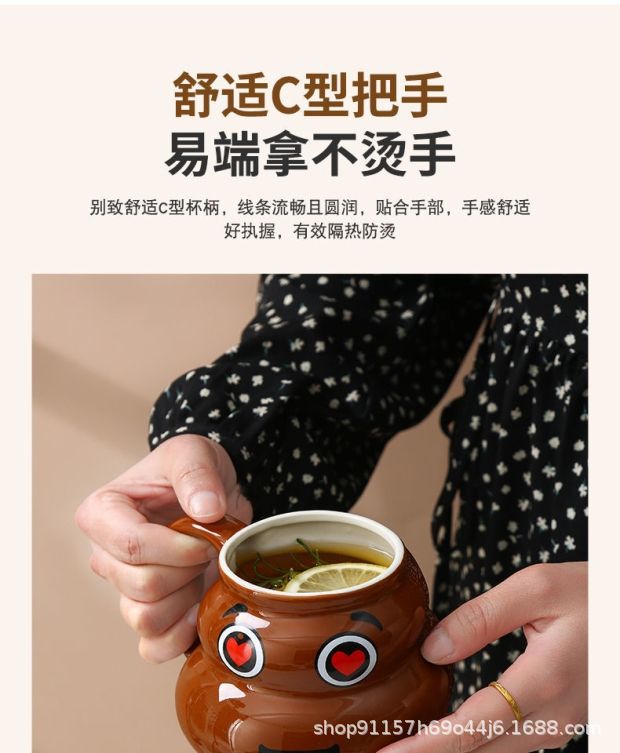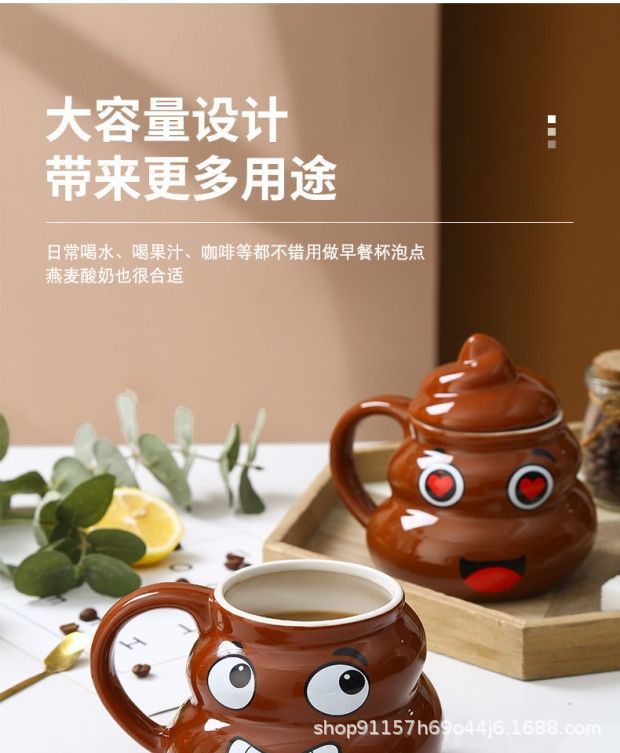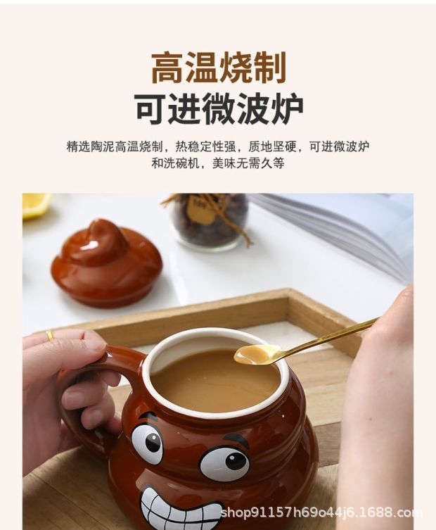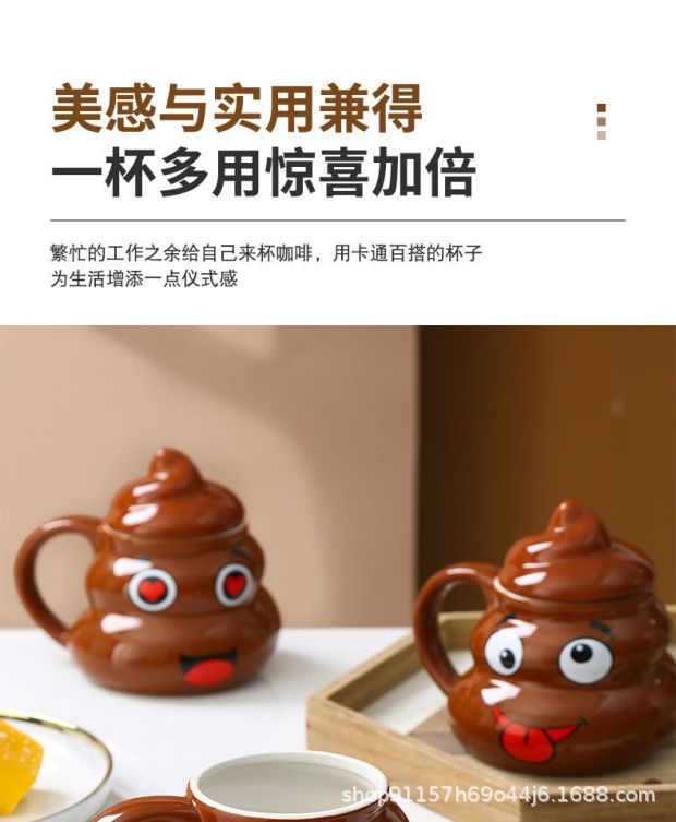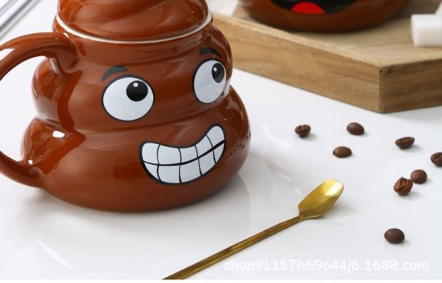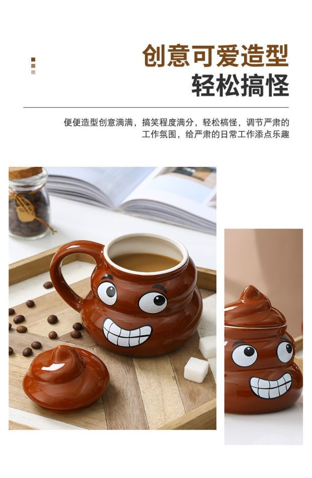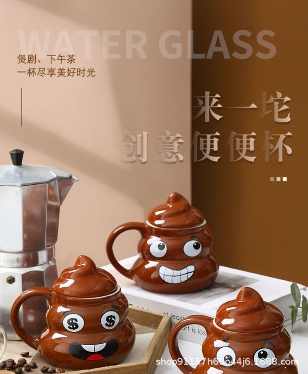 • 사랑스러운 똥 모양 머그컵, 선물용 선물 세트 (미니 금수저 포함)