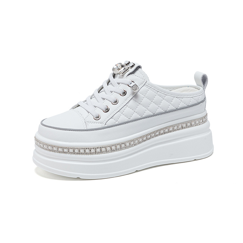 2025년 여성용 야외용 신발, 키 작은 분들을 위한 8CM 두꺼운 밑창 플랫폼 통기성 캐주얼 앞코가 있는 반슬리퍼, 키높이 효과와 다양한 활용도스토어 가기