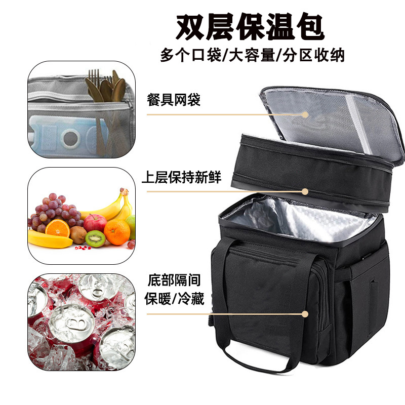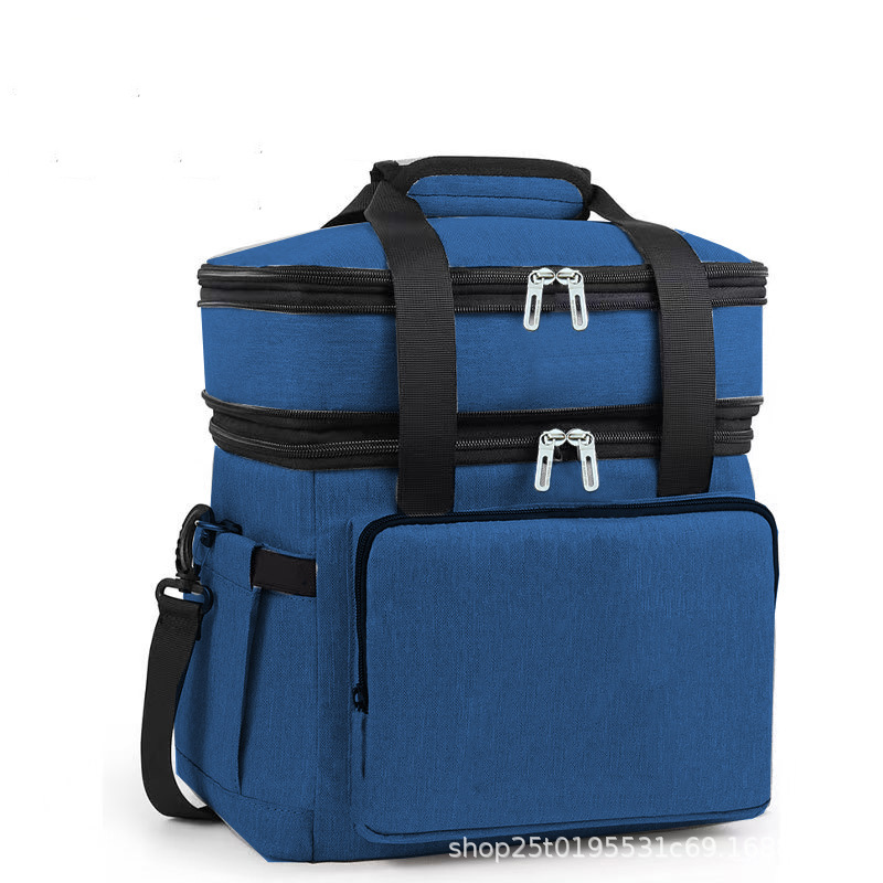 • 네이비 블루 더블 레이어 휴대용 보온 가방