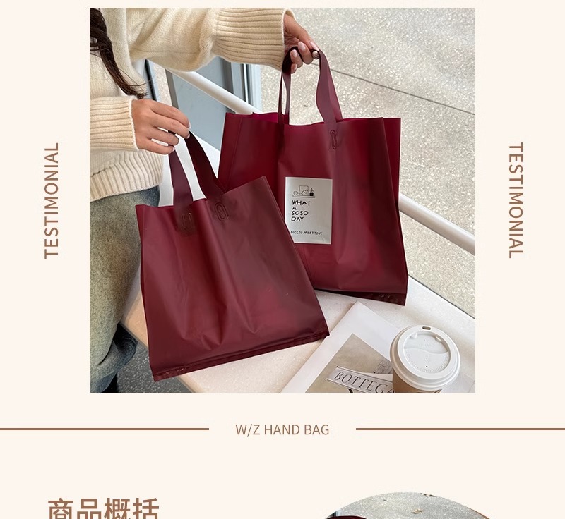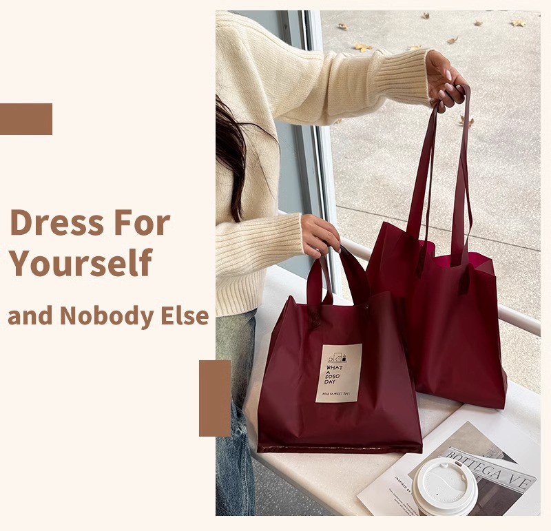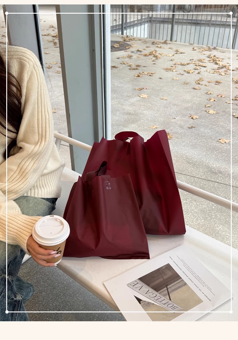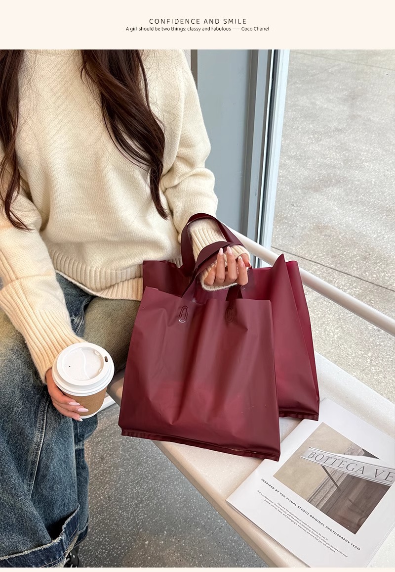안콜라 레드 의류 매장 핸드백 여성 의류 포장 포장 쇼핑 가방 선물 플라스틱 두꺼운 재고