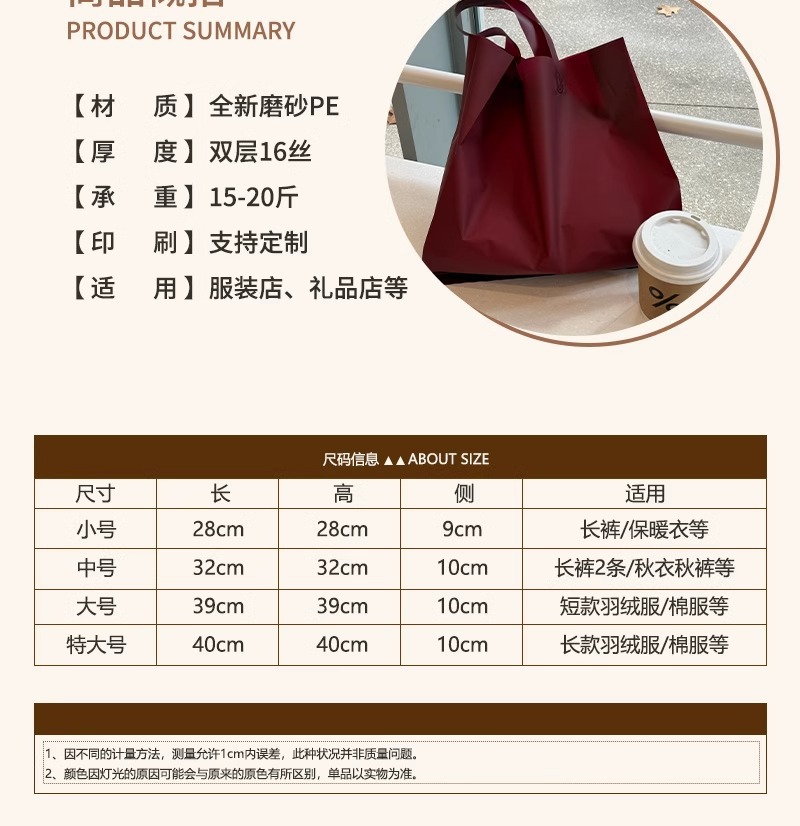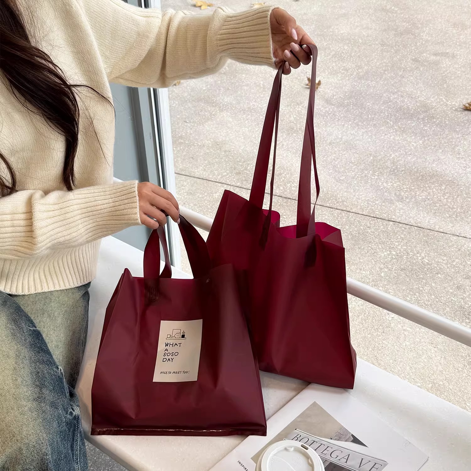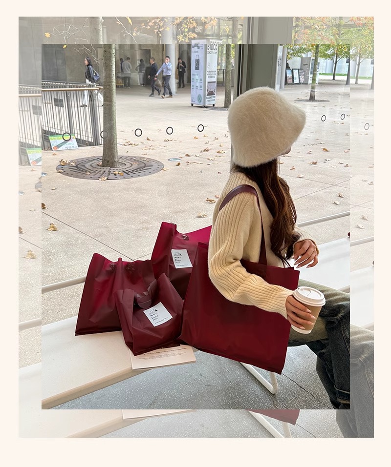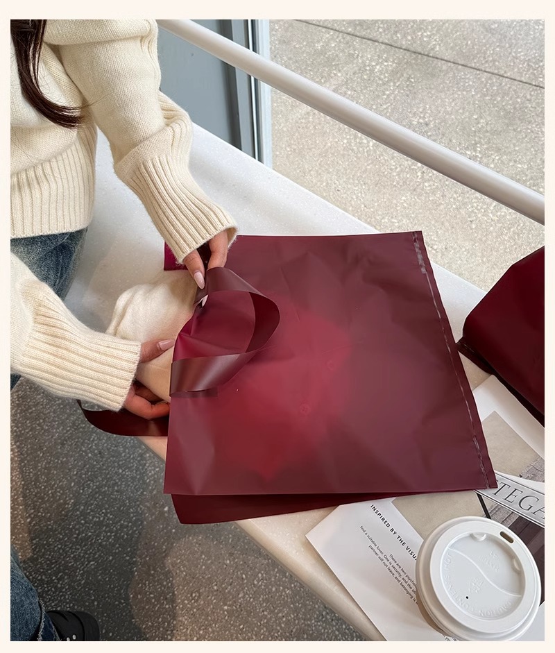 안콜라 레드 의류 매장 핸드백 여성 의류 포장 포장 쇼핑 가방 선물 플라스틱 두꺼운 재고