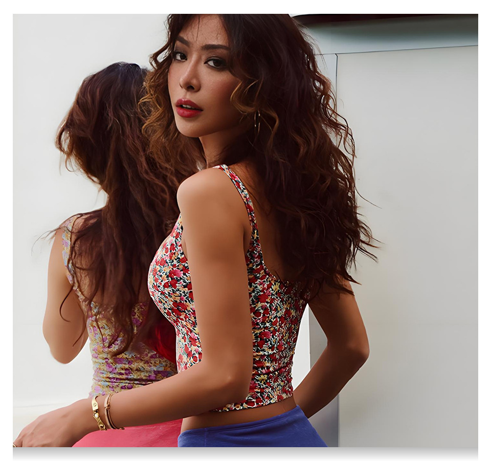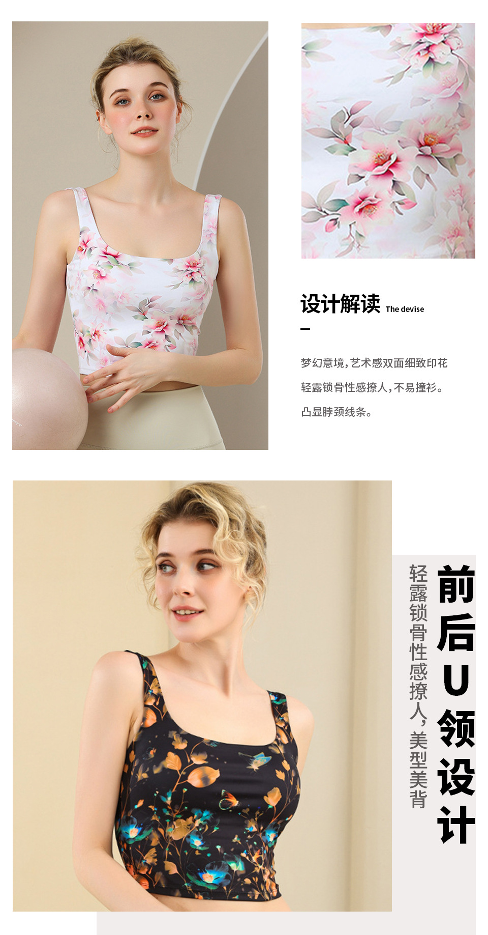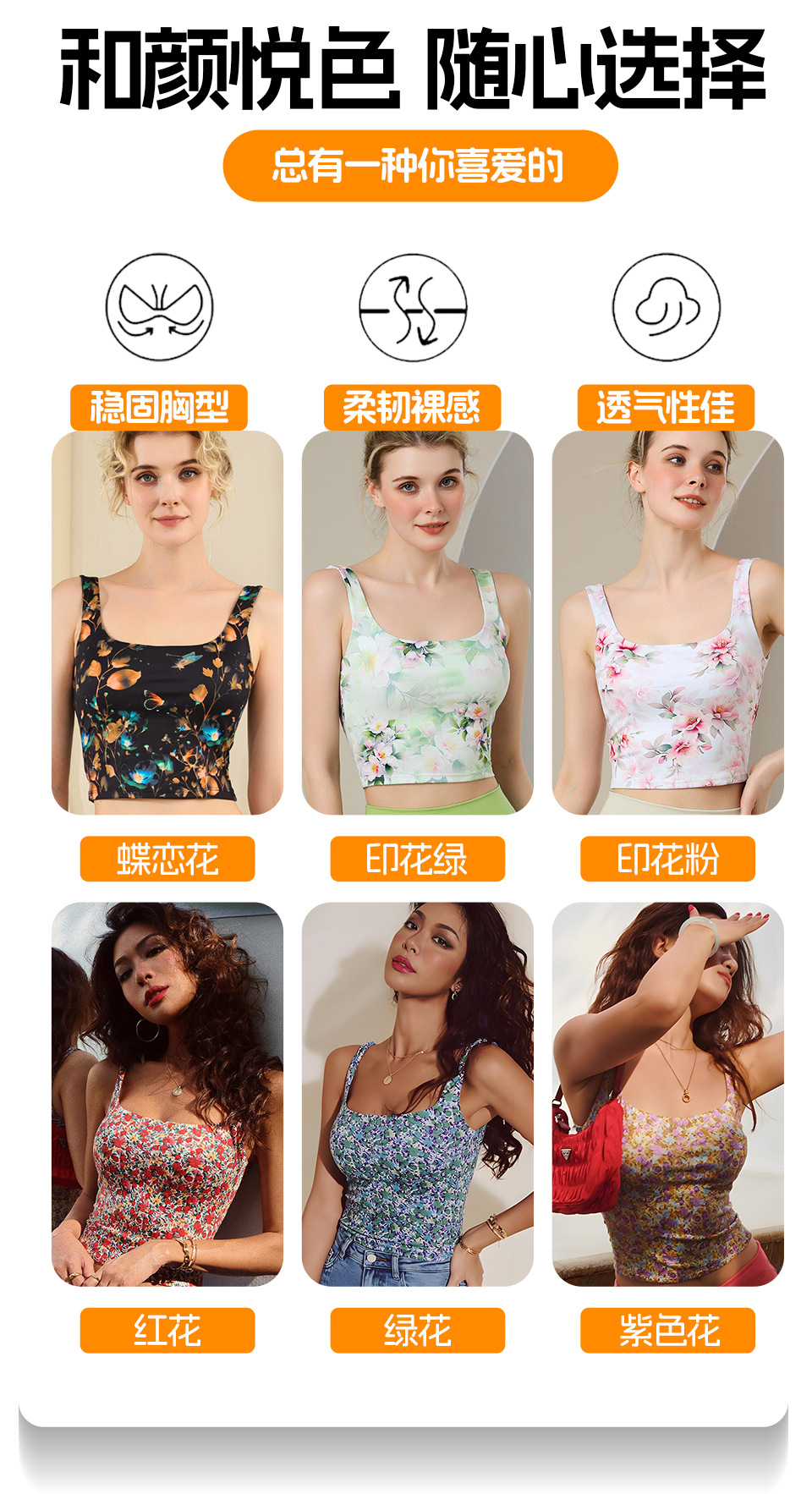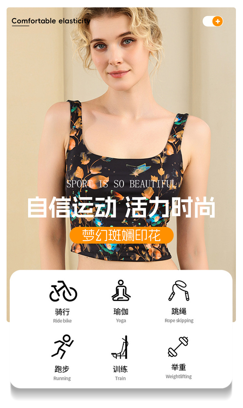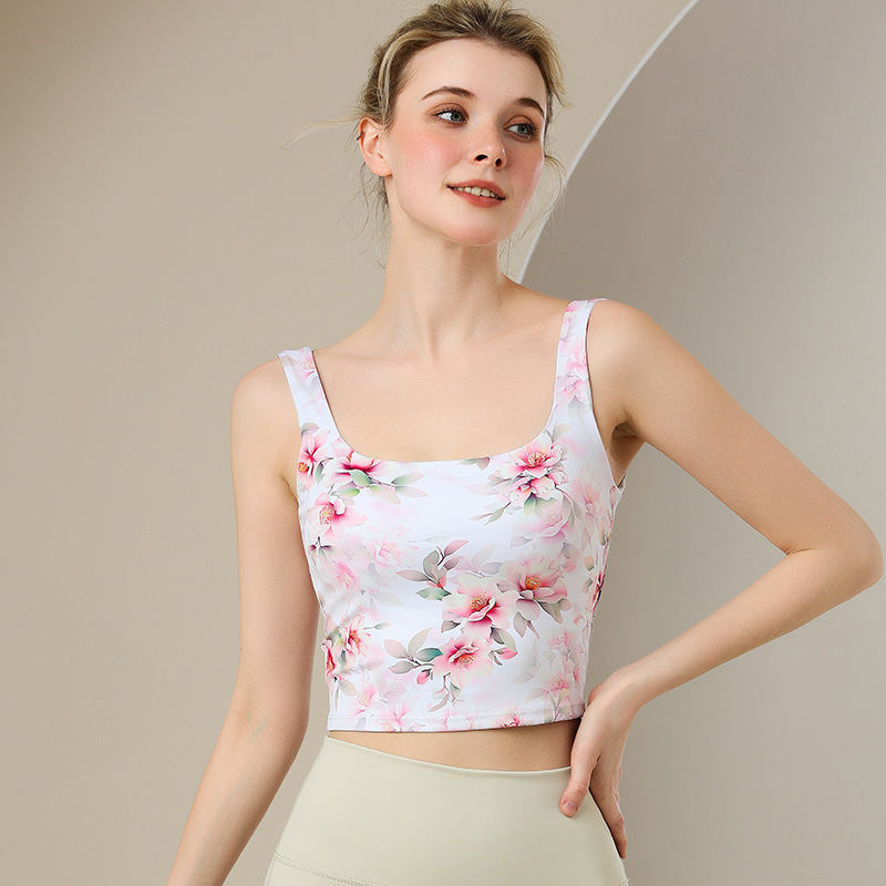 유럽과 미국의 컬러 프린트 좋은 요가 옷 조끼 여자 스포츠 브래지어 가슴 패드 피트니스 속옷 러닝 브래지어