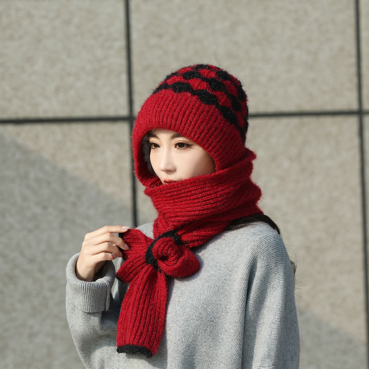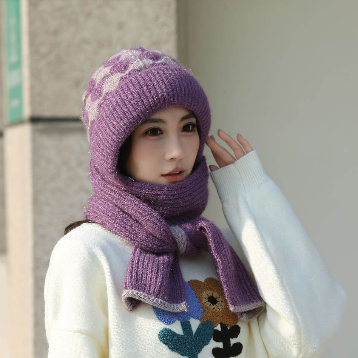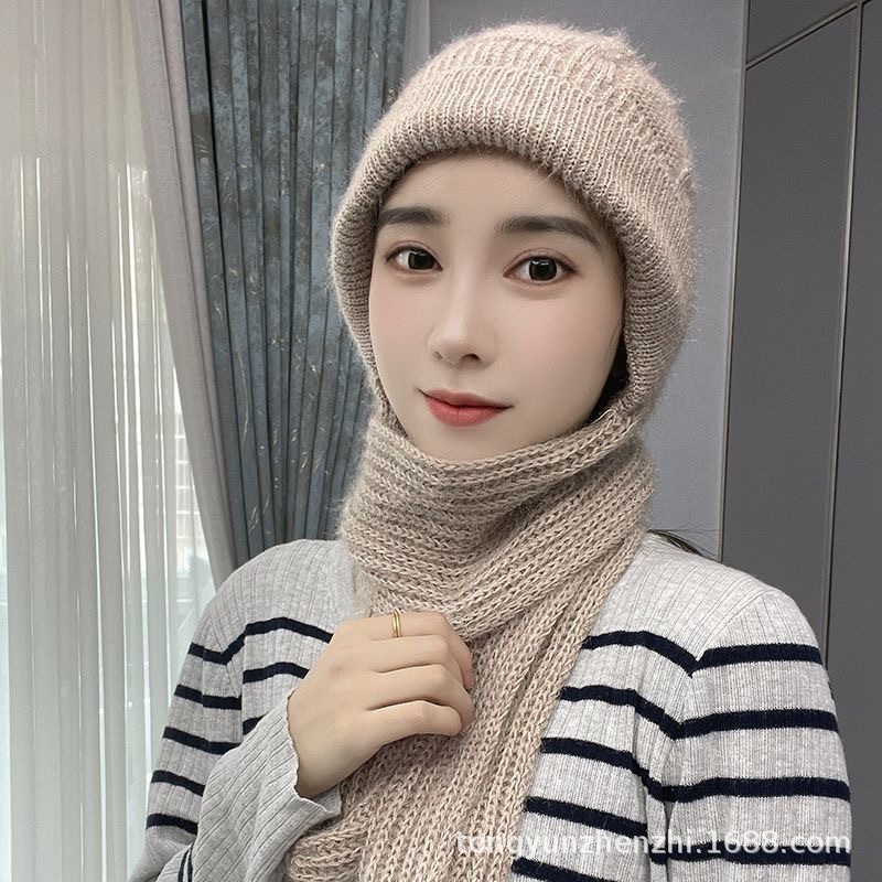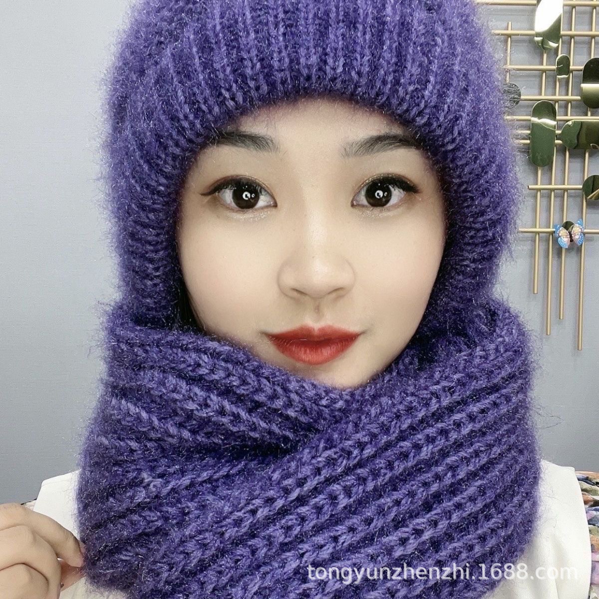 가을과 겨울 컬러 매칭 니트 스노우 캡 사이클링 따뜻한 어머니 패션 이어 보호 캡 여성 모자 스카프 올인원 캡스토어 가기