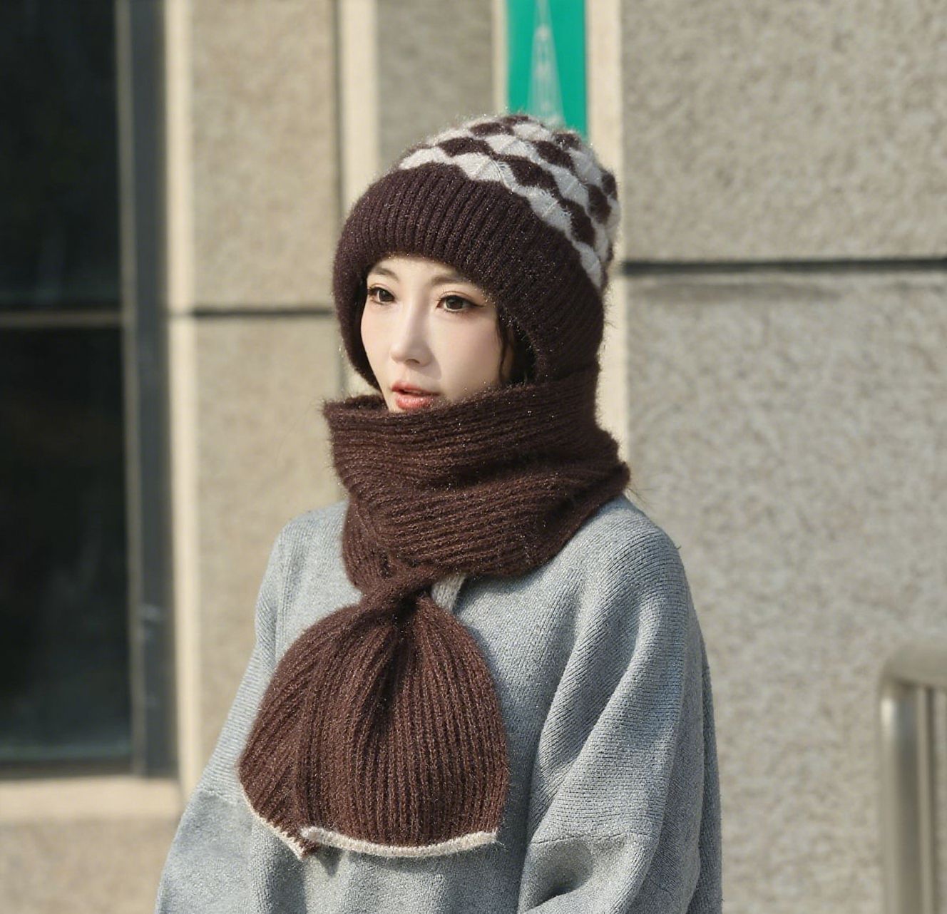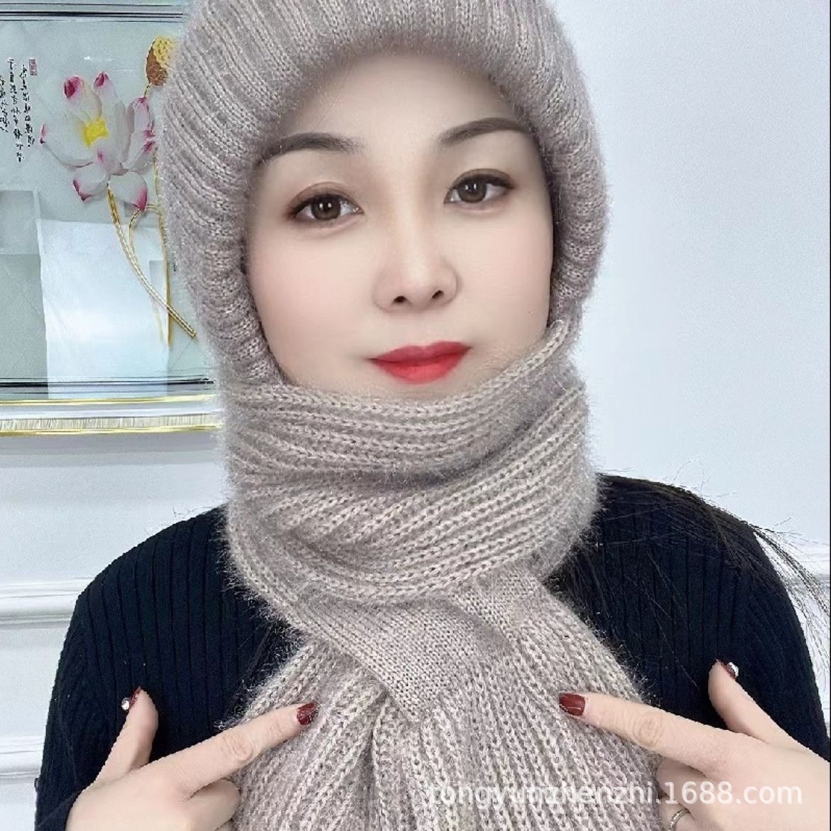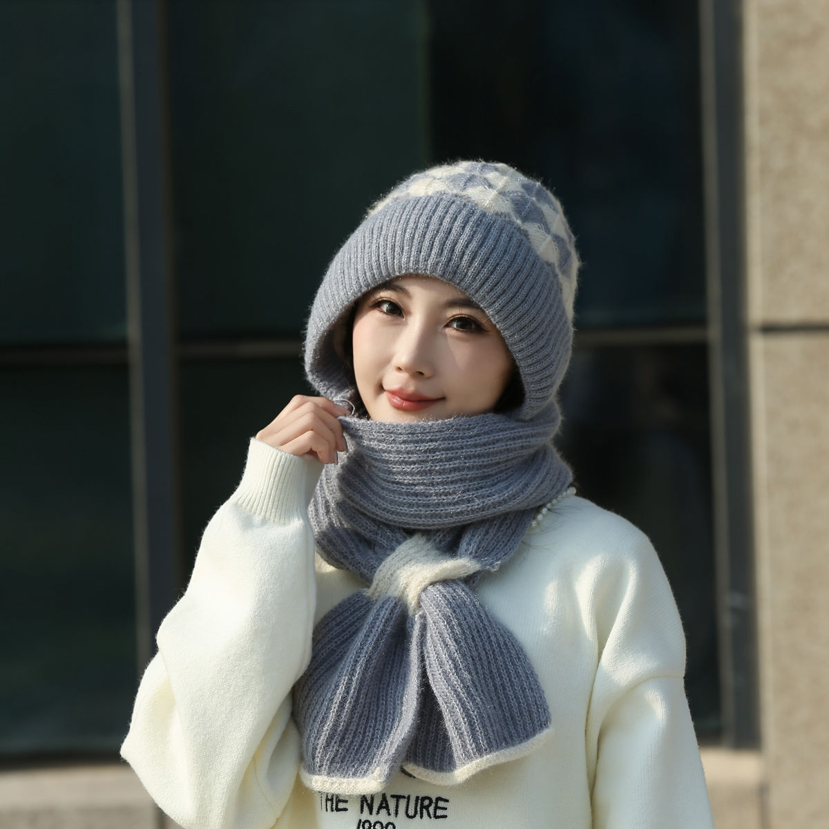 가을과 겨울 컬러 매칭 니트 스노우 캡 사이클링 따뜻한 어머니 패션 이어 보호 캡 여성 모자 스카프 올인원 캡스토어 가기