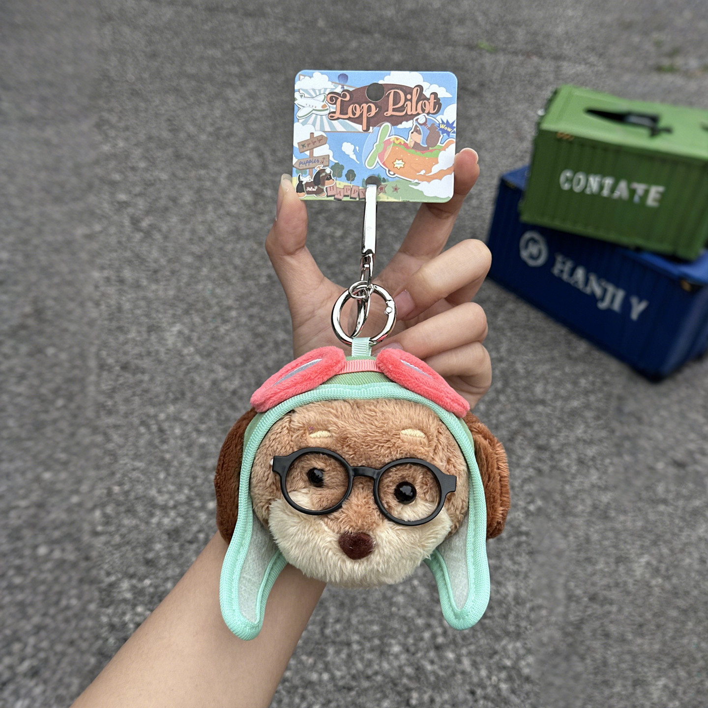 • 에이스 파일럿 안경 쓴 봉제 인형 키링 - 레드 고글