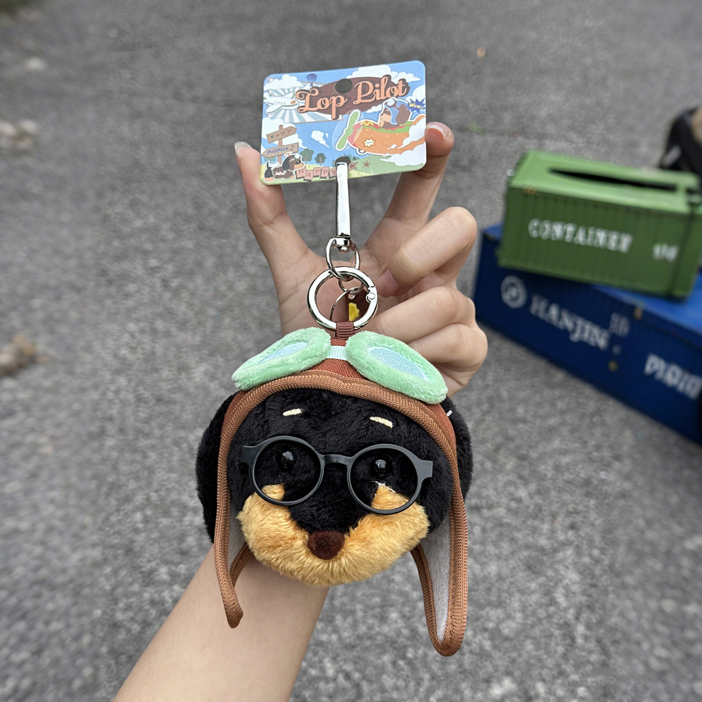• Pabaisi 닥스훈트 에이스 파일럿 흔들리는 비명 봉제 인형 펜던트 블랙