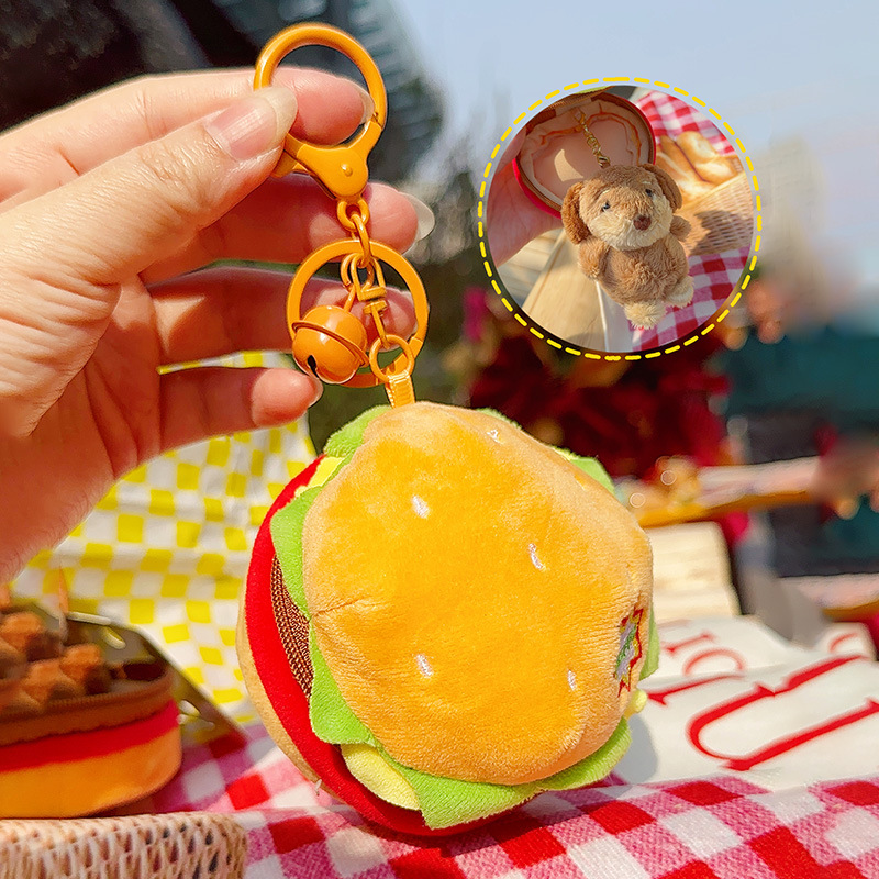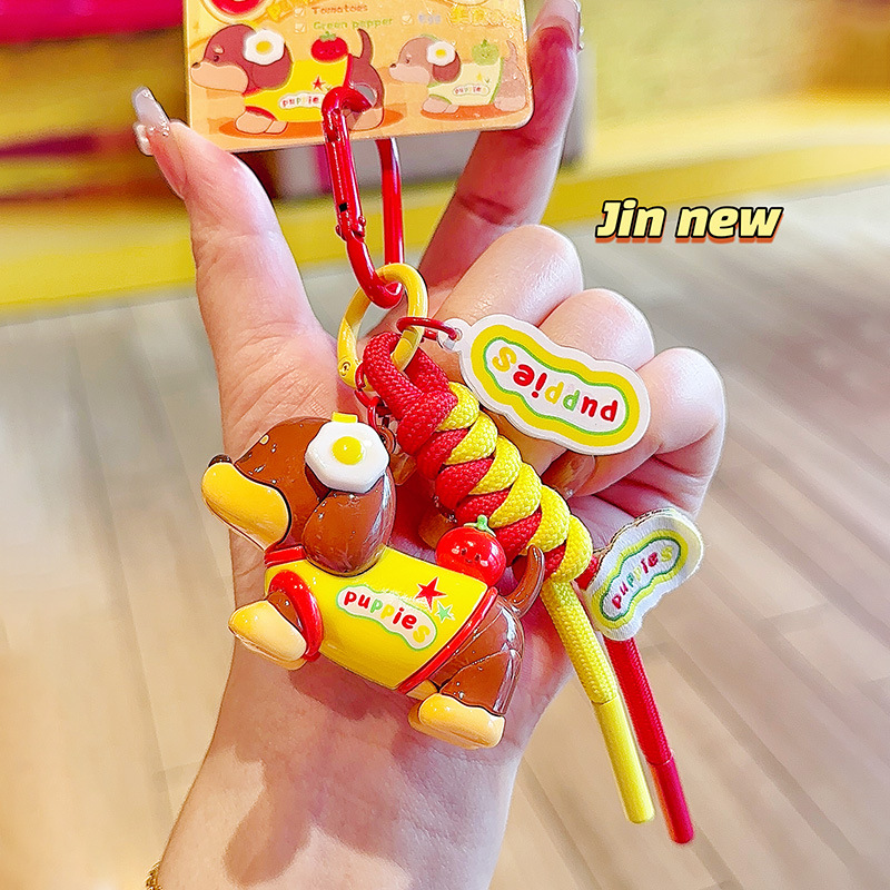 원래 정품 파비 소시지 개 햄버거 봉제 펜던트 만화 소시지 강아지 키 체인 가방 펜던트 도매스토어 가기