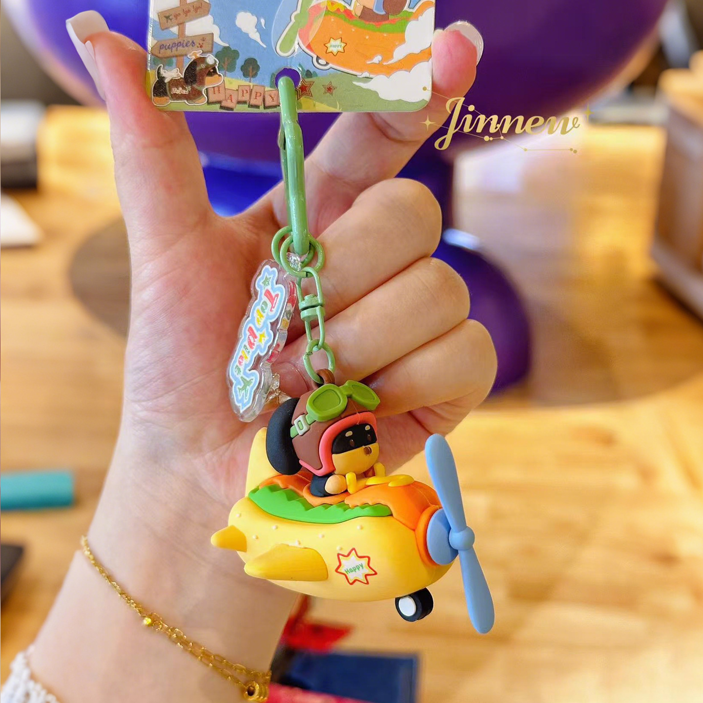 • 블루 파베 닥스훈트 에이스 파일럿 핫도그 낙하산 PVC 펜던트