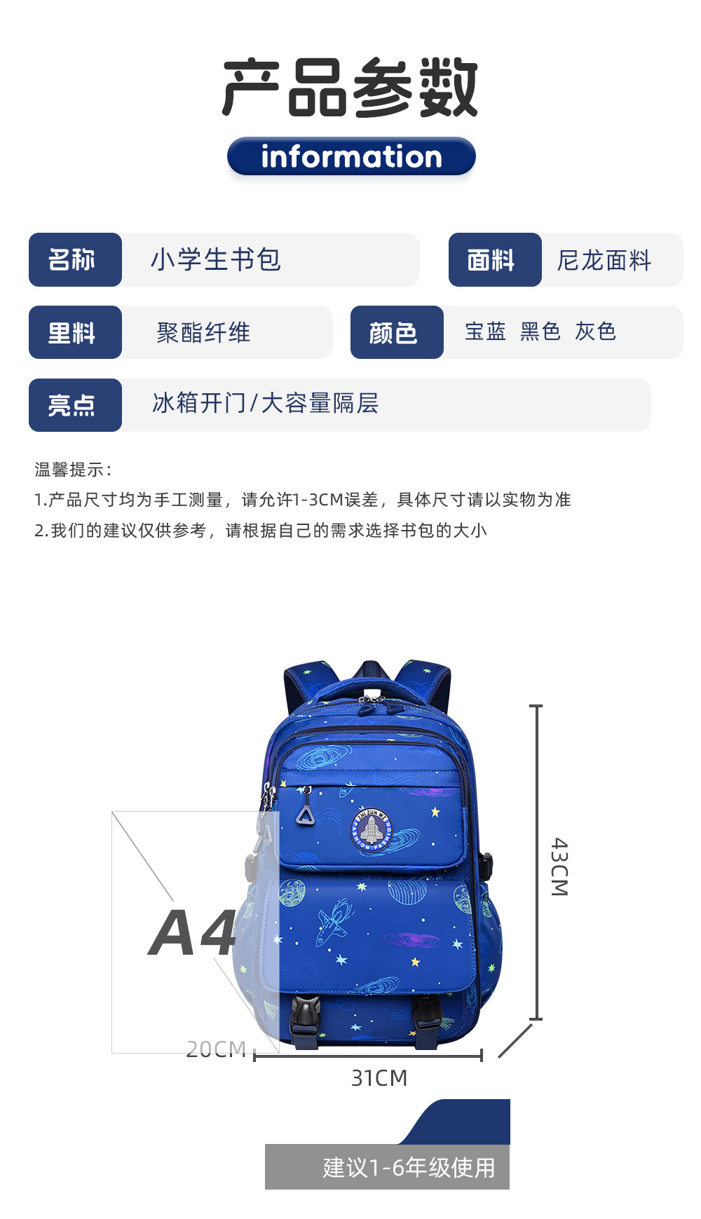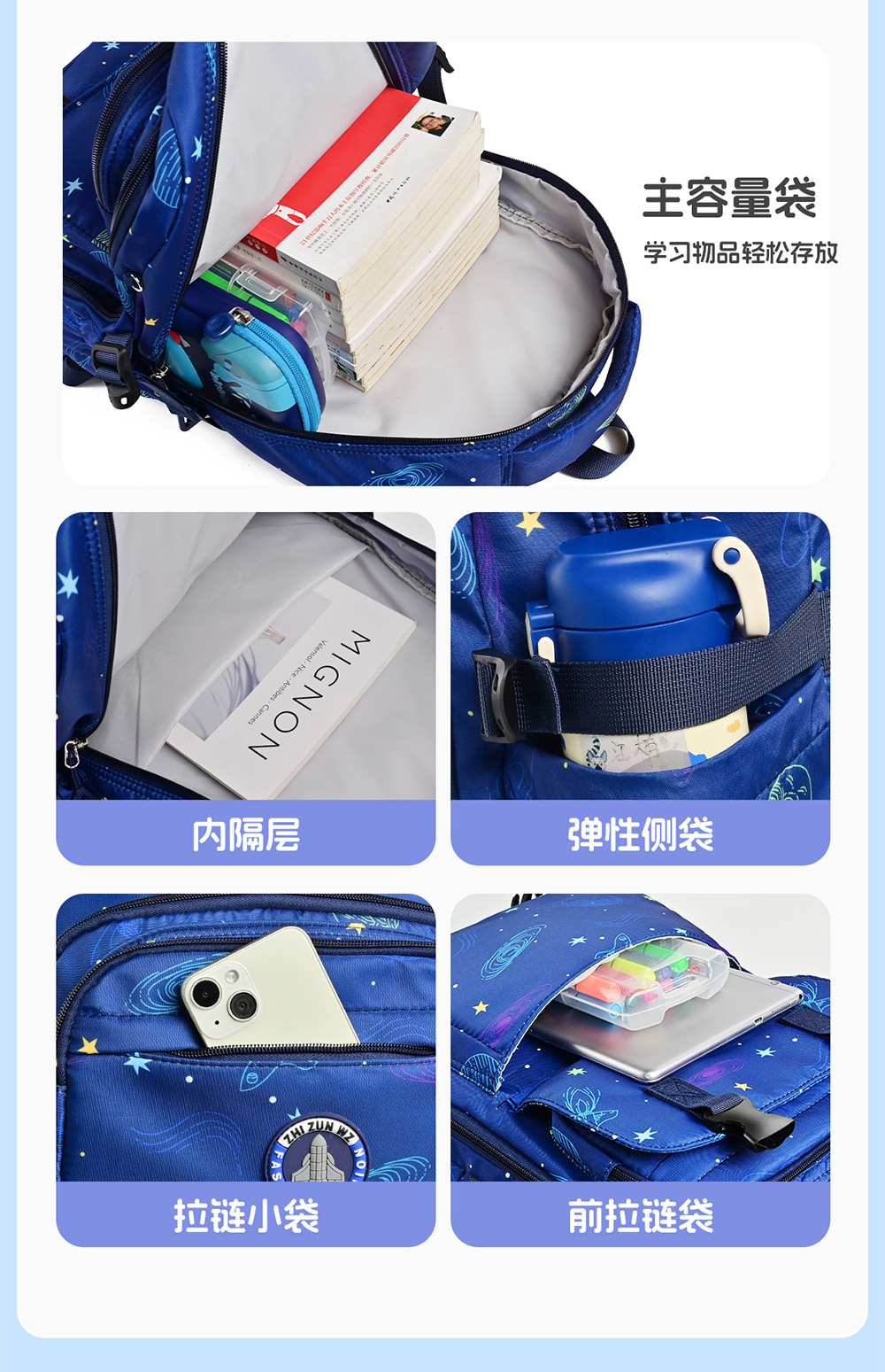 초등학생을위한 별이 빛나는 하늘 캐주얼 배낭 3-6 학년 어린이 배낭 경량 소년 소녀 학교 가방 도난 방지 포켓 백스토어 가기