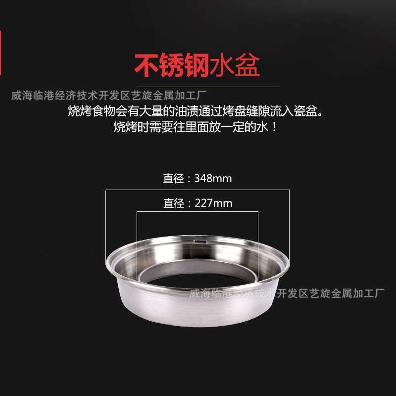 此款烤炉是我厂自主生产,价格优惠,质量保证!材质不锈钢,使用原料为木炭,由外筒、水盆、炭盆、隔热层、拢烟圈、盖子组成。室内使用需配下排烟管道,户外使用也可以不用排烟设备,适用于烧烤烤肉店和韩式料理店及日式烧肉店