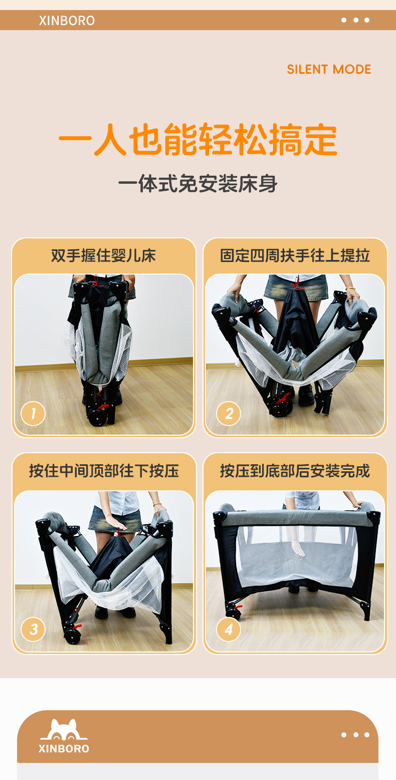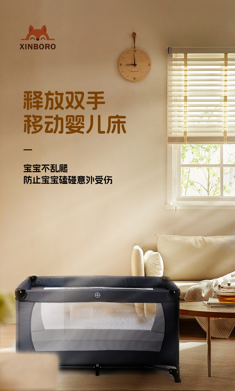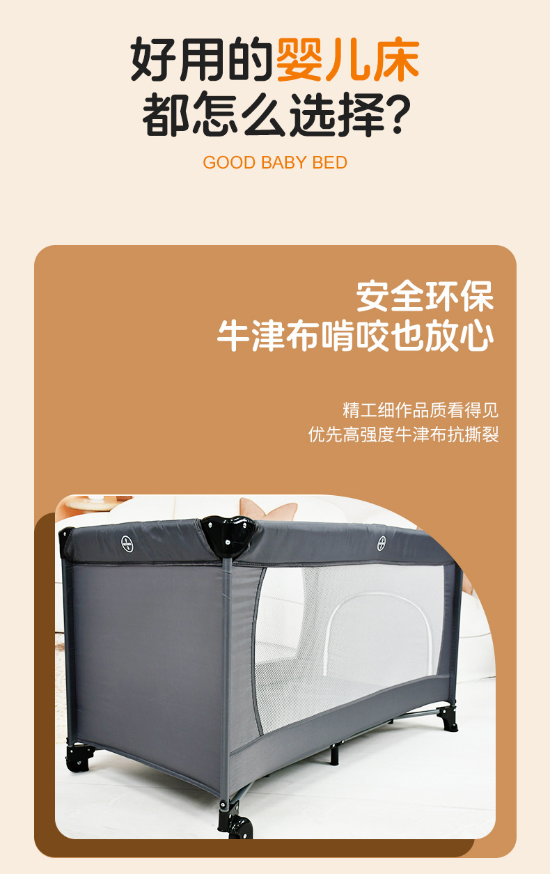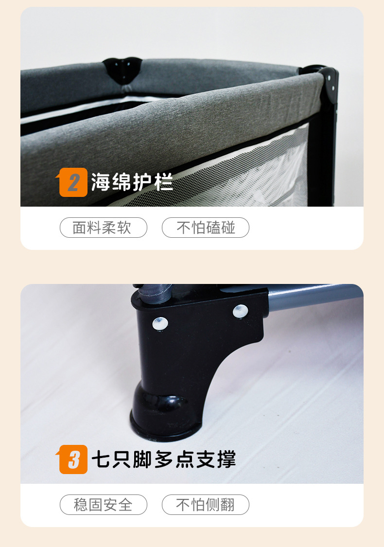 이동식 아기 침대, 대형 침대와 결합 가능, 접이식, 휴대용, 다기능, 신생아용 아기 침대