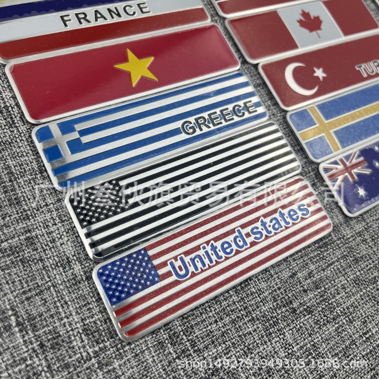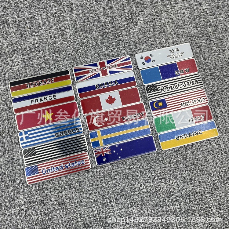 개인화 된 자동차 스티커 알루미늄 스티커 수정 된 국기 미국 프랑스 영국 러시아 우크라이나 캐나다 EU 스크래치 스티커스토어 가기
