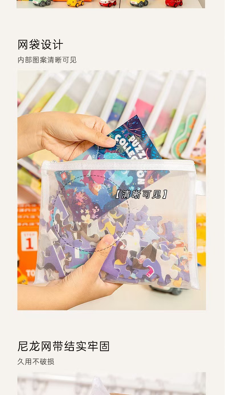 퍼즐 저장 가방 어린이 아기 건물 블록 장난감 정렬 메쉬 가방 카드 저장 투명 지퍼 메쉬 가방