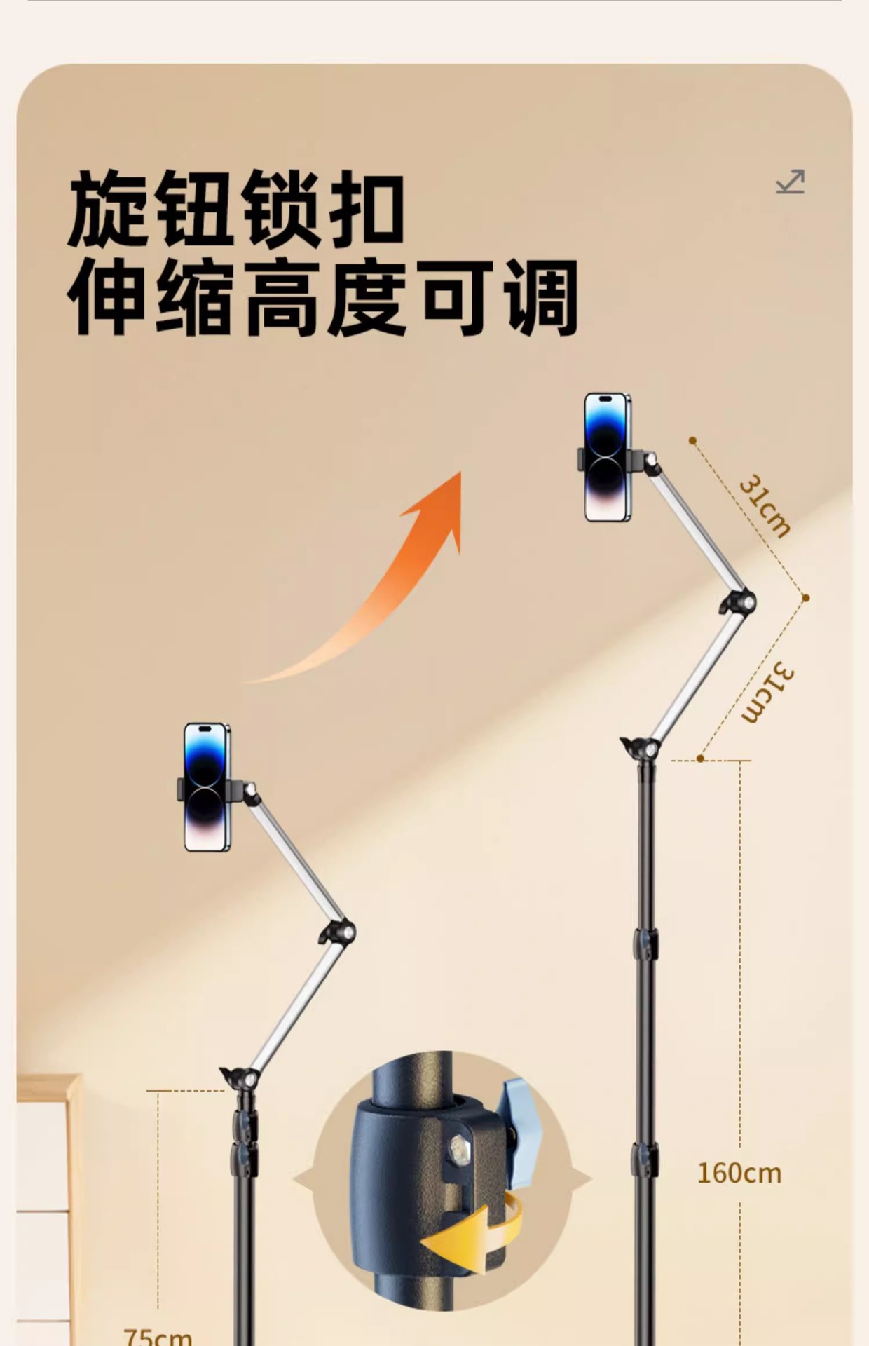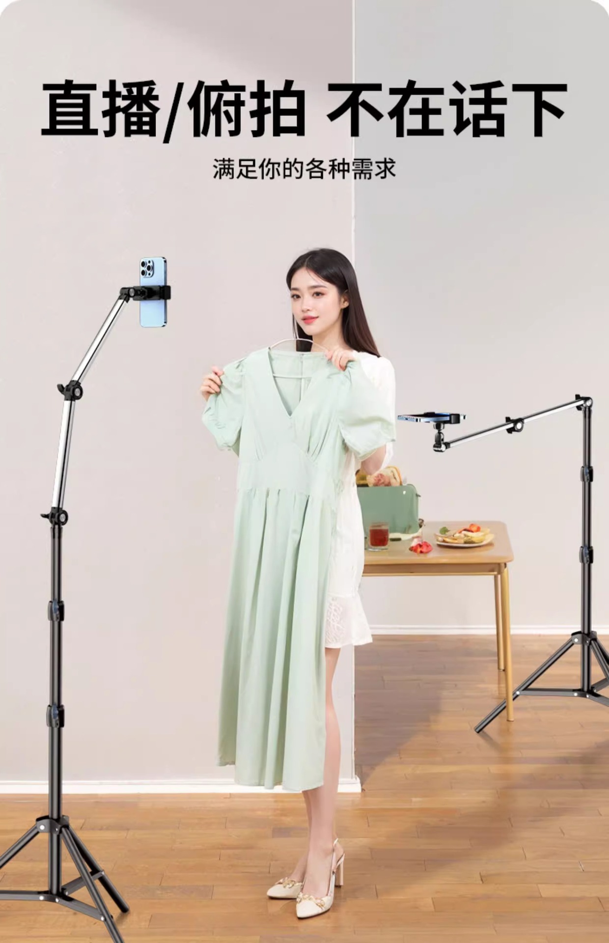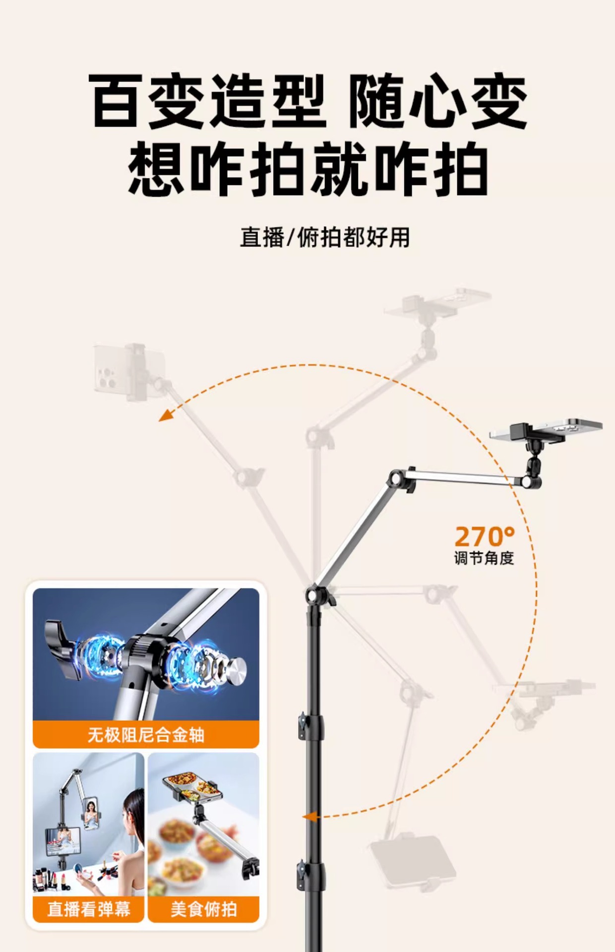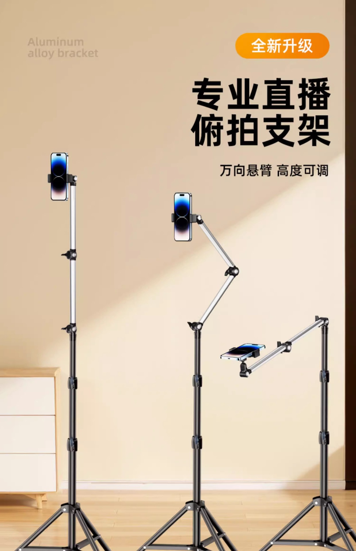 휴대 전화 스탠드 라이브 삼각대 다기능 실내 오버 헤드 촬영 휴대 전화 스탠드 멀티 카메라 촬영 바닥 망원경 지원
