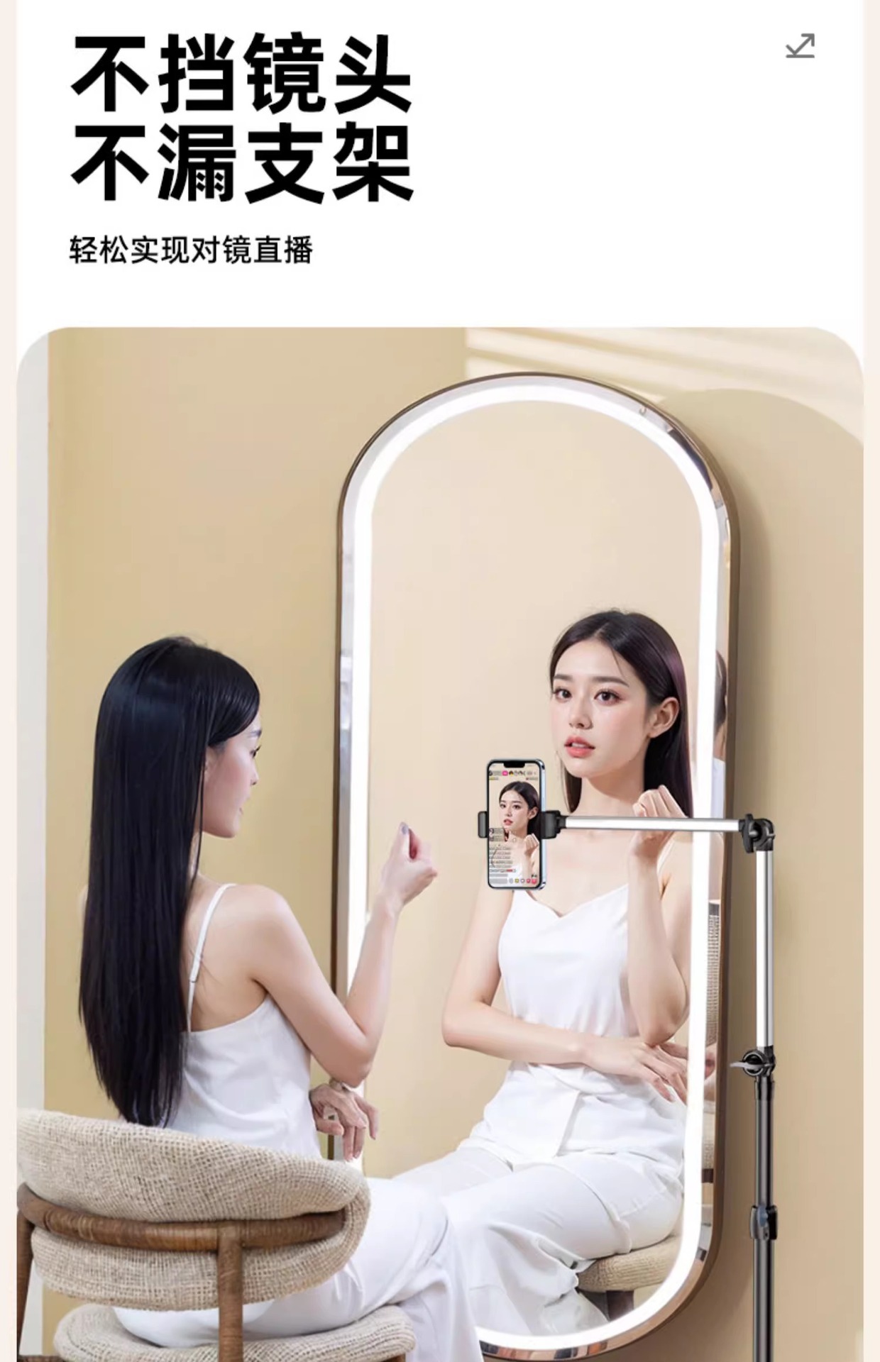 • 1.7m [반투명 탄소강] 뷰티 필 라이트 + 플랫 클립 + 카메라