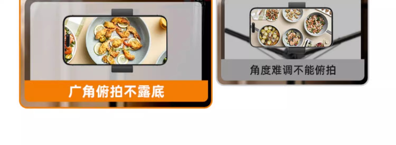 • [2.3m 합금 손잡이 오버헤드 촬영 브래킷] 반투명 탄소강 - 듀얼 카메라 위치