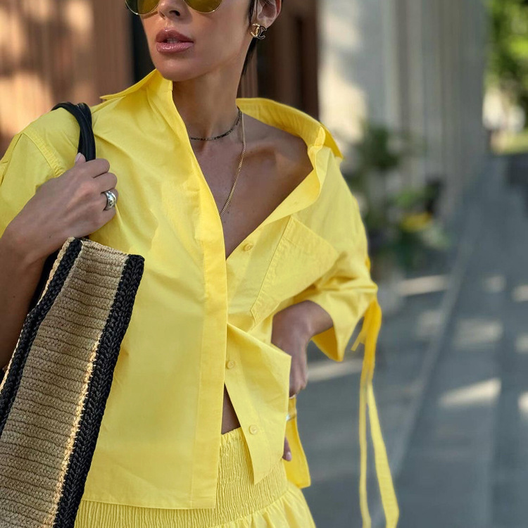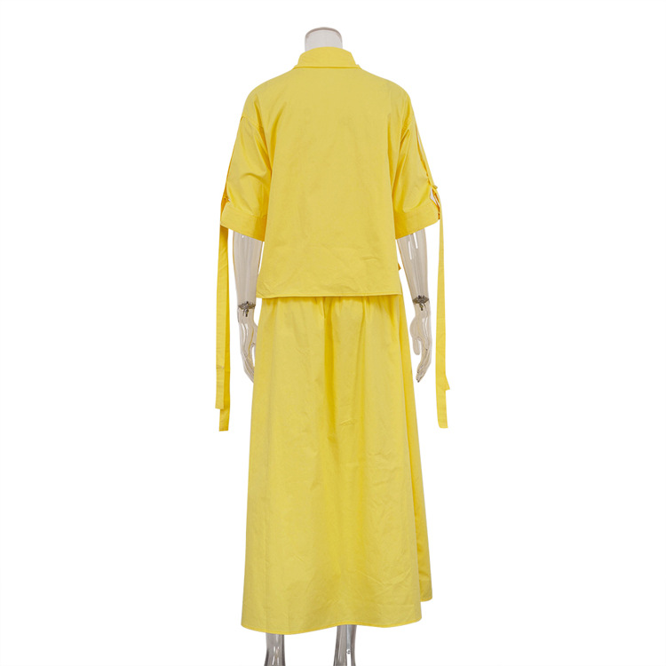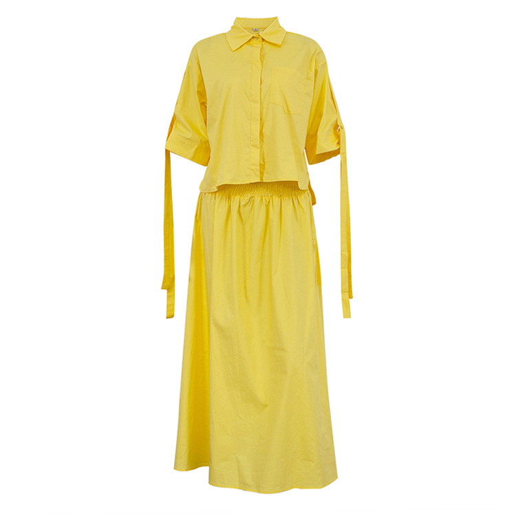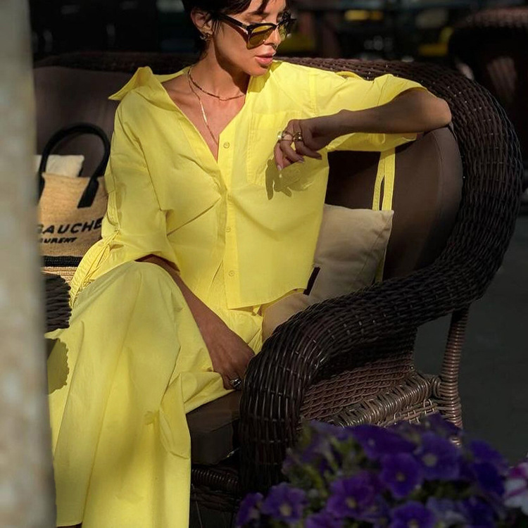 국경 간 대외 무역 2025 봄과 가을 새 옷깃 셔츠 노란색 치마 세트 여성 하이 엔드 투피스 세트스토어 가기