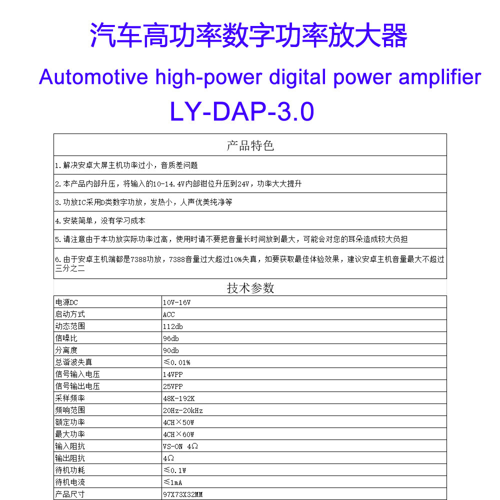 • LY-DAP 고출력 버전(고음 및 저음 볼륨 조절 가능)