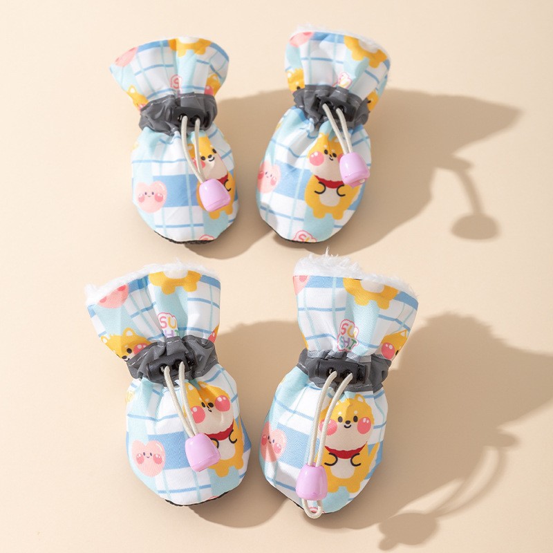 애완 동물 따뜻한 코튼 신발 겨울 두꺼운 개 신발 미끄럼 방지 테디 비콘 작은 개 발 커버 스노우 부츠