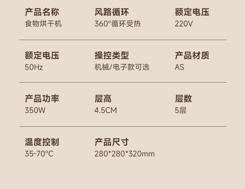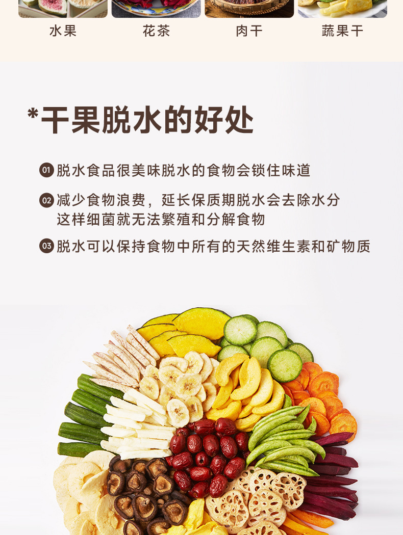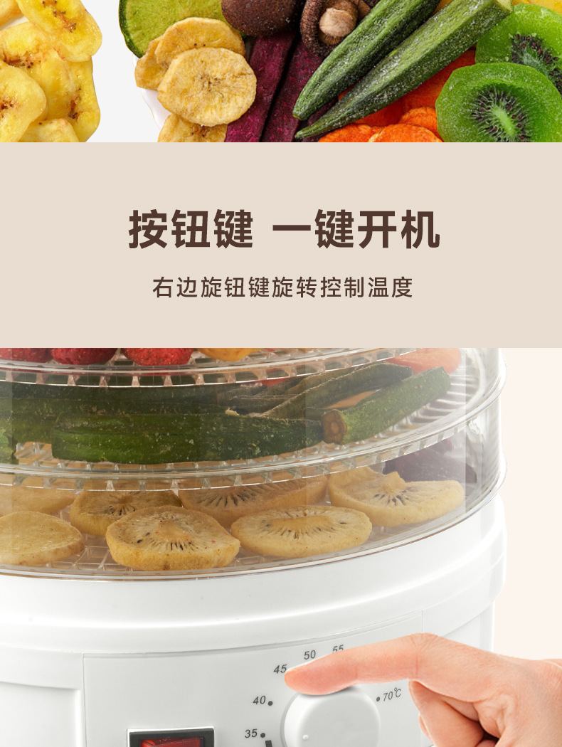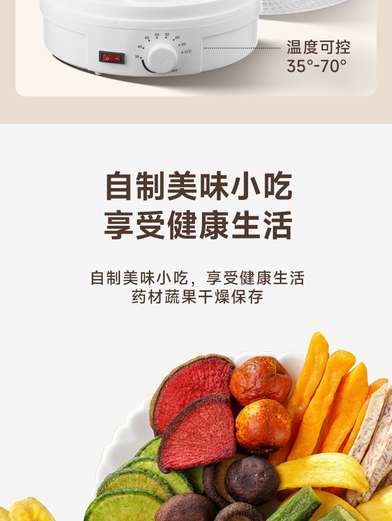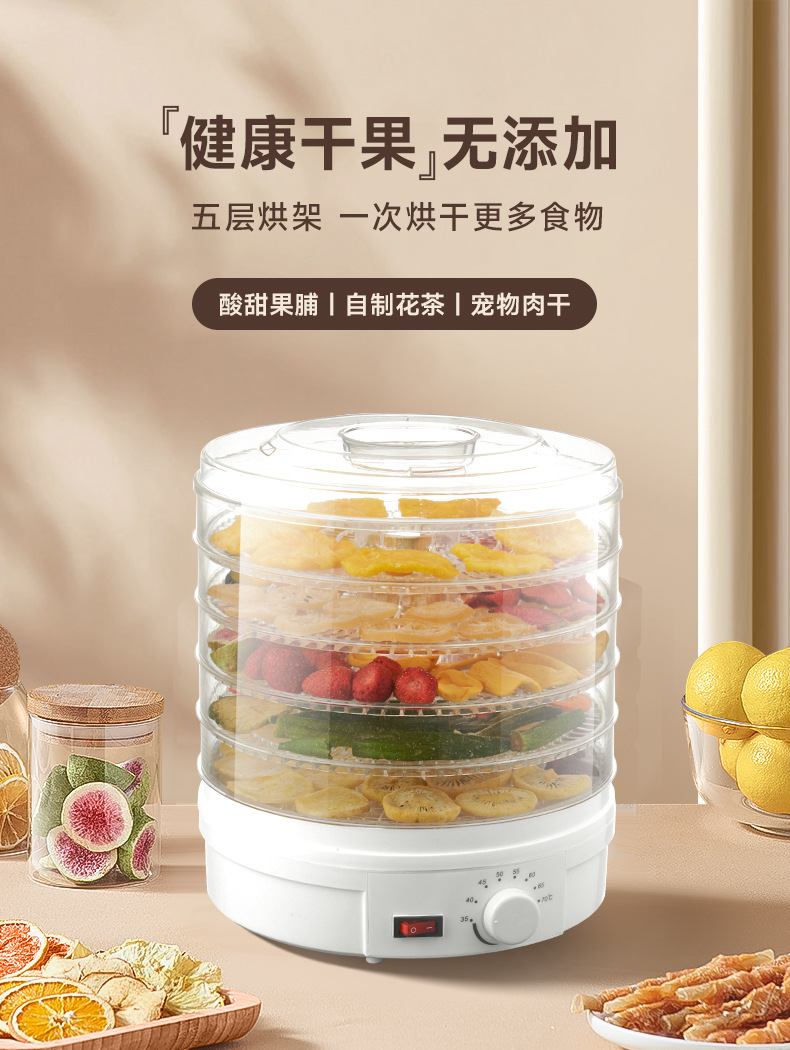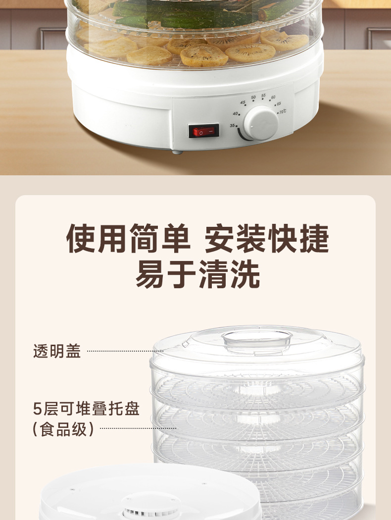 特点5层可调式格盘,安静贴心;360°热风循环风干,食品级材质,安全放心。OEM代工、定制、跨境供货。量大优惠联系客服