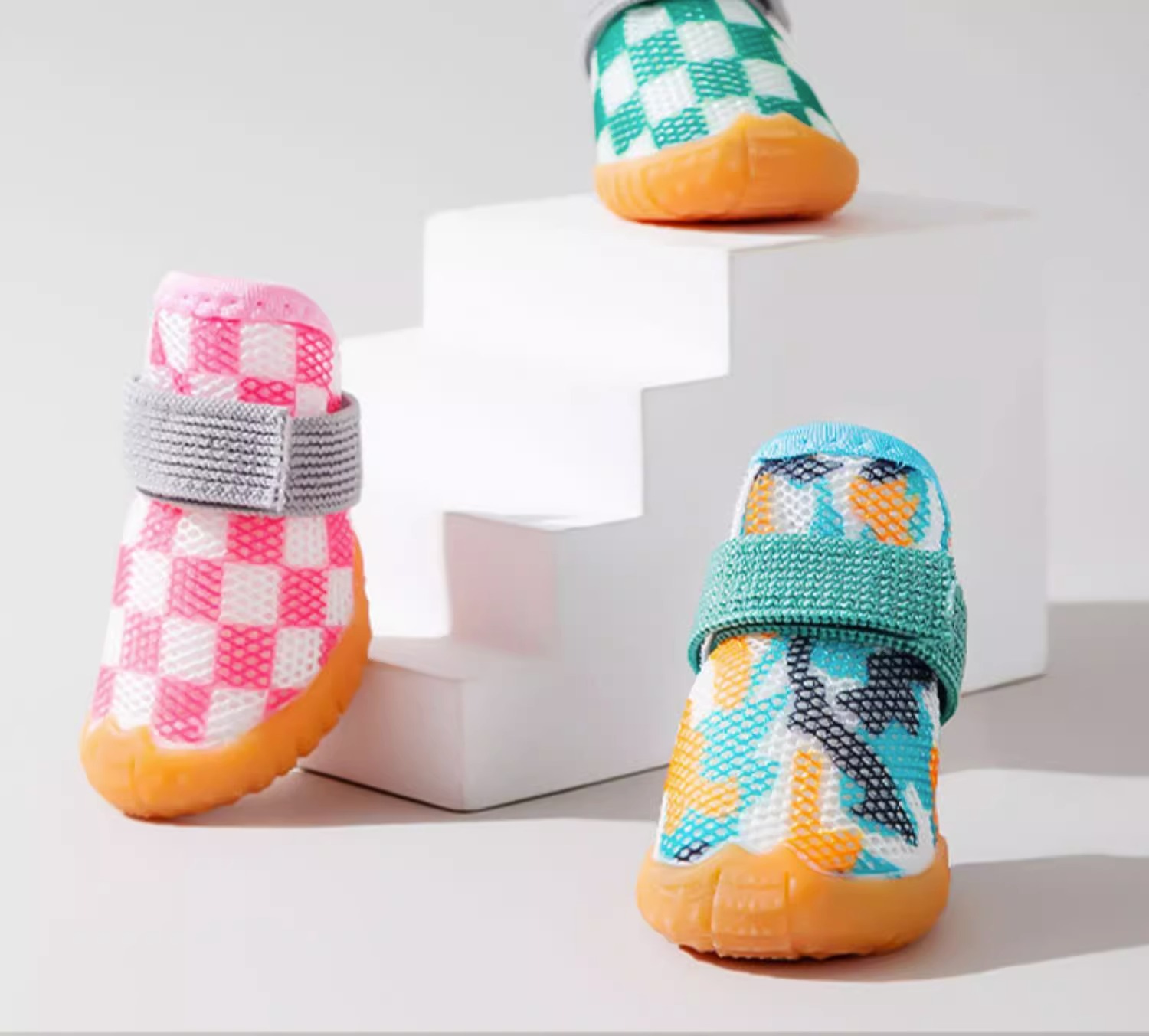 애완 동물 사계절 통기성 신발 개 그리드 탄성 신발 테디 빅시 옹 미끄럼 방지 발 커버는 떨어질 수 없습니다