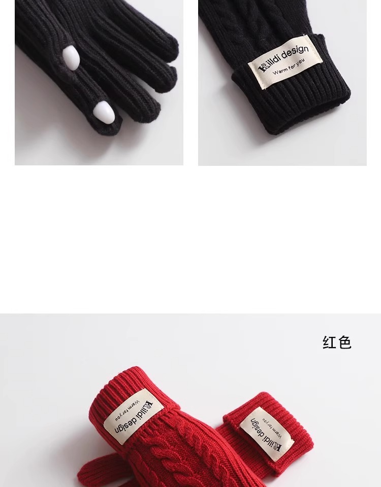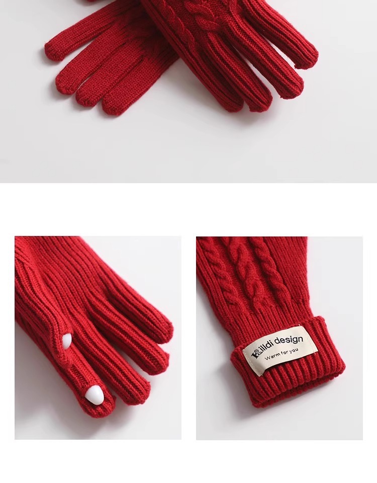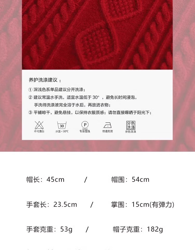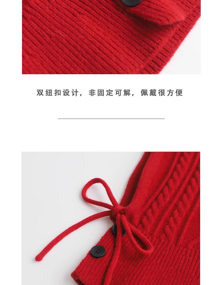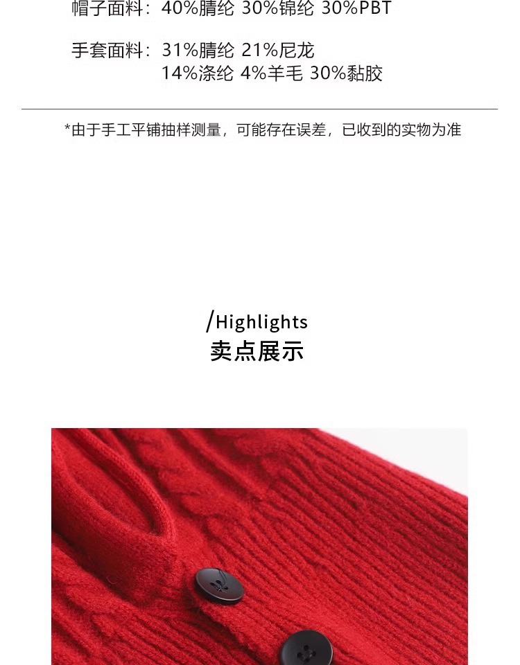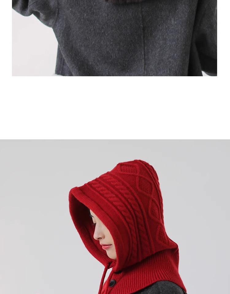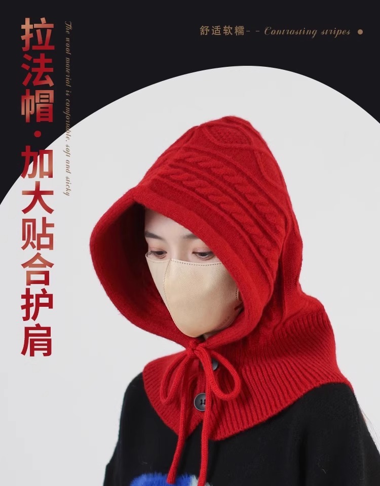 한국 트위스트 텍스처 니트 헤드 기어 가을과 겨울 귀 보호 큰 머리 둘레 모자 스카프 장갑 하나의 투피스 레드