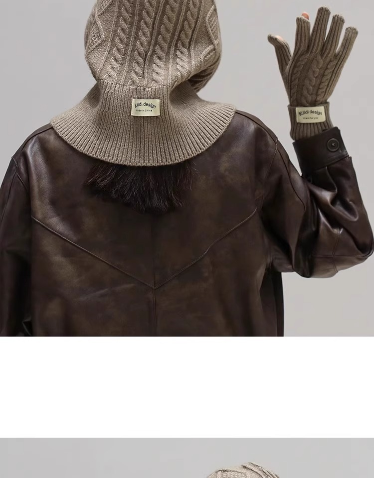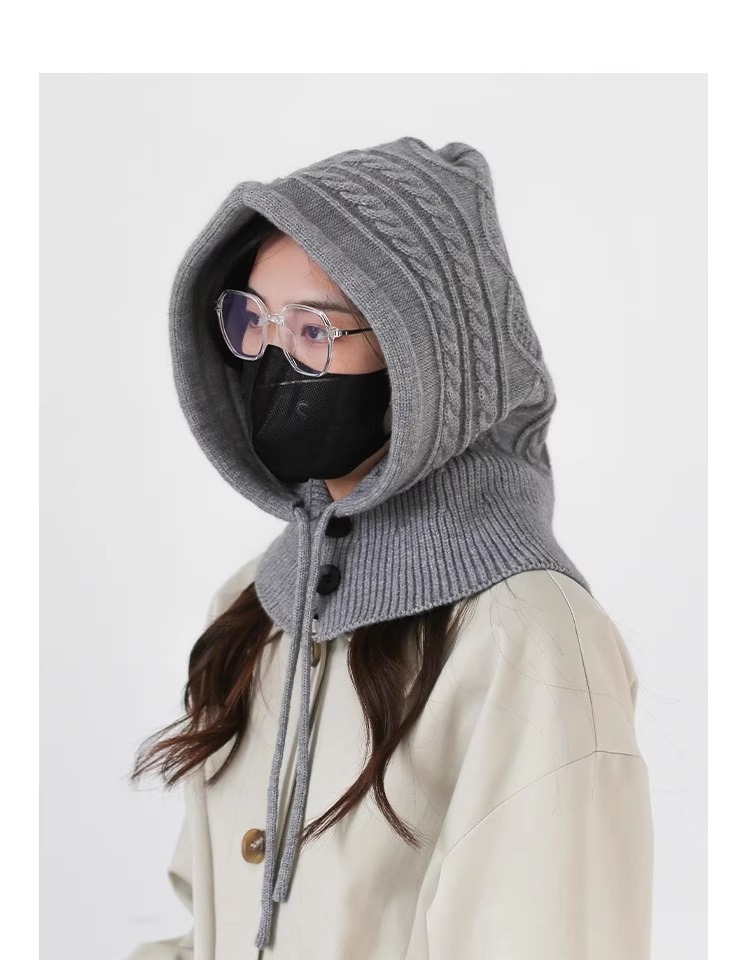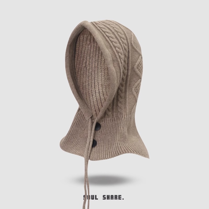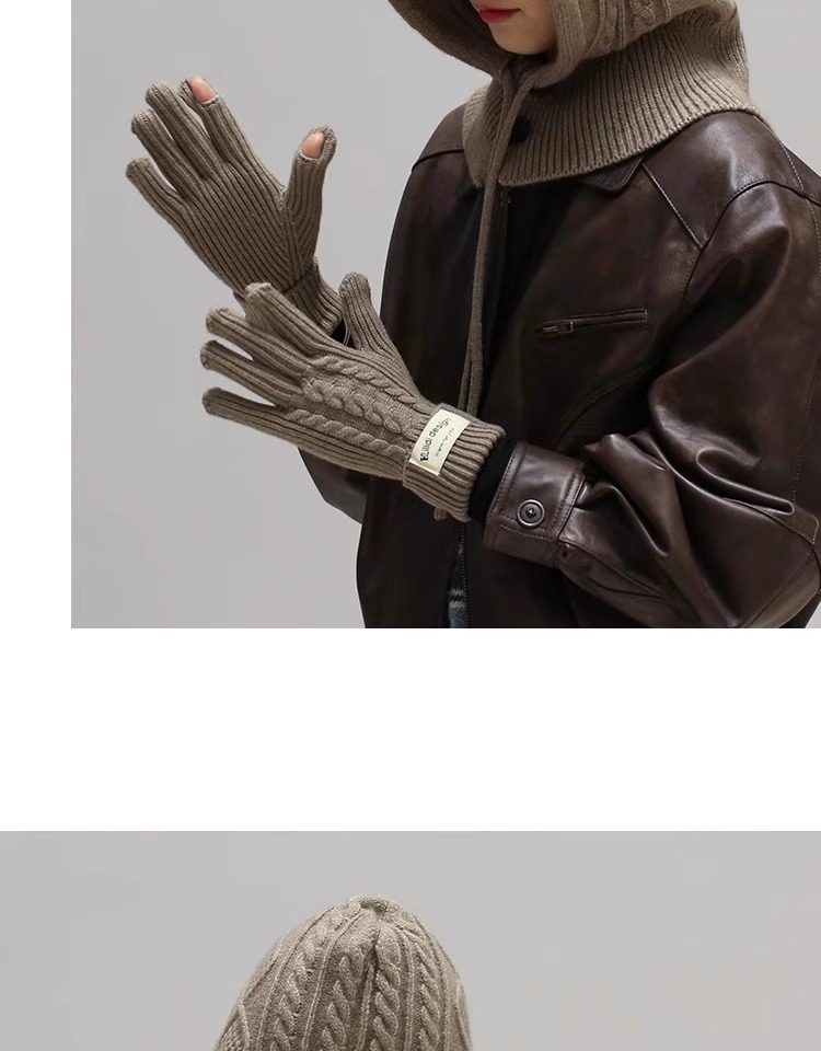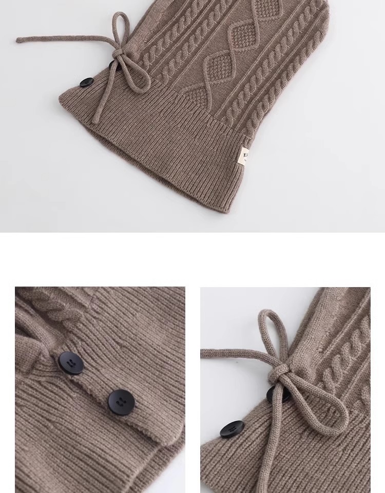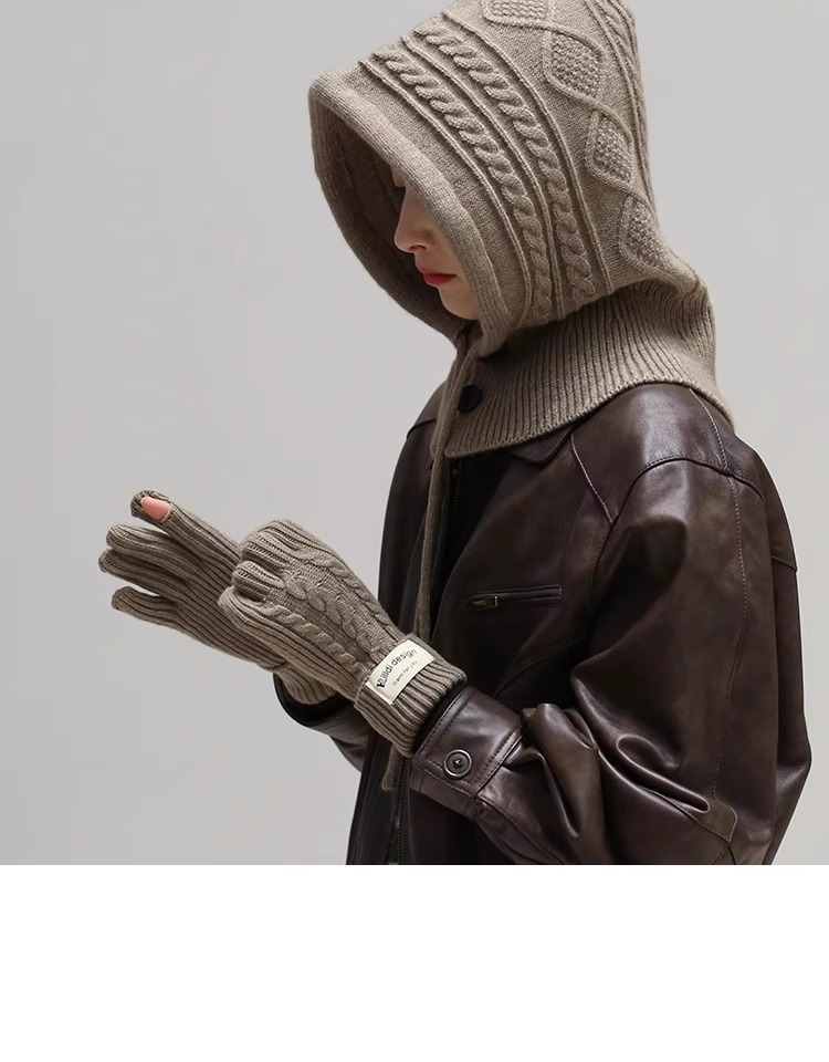 한국 트위스트 텍스처 니트 헤드 기어 가을과 겨울 귀 보호 큰 머리 둘레 모자 스카프 장갑 하나의 투피스 레드스토어 가기