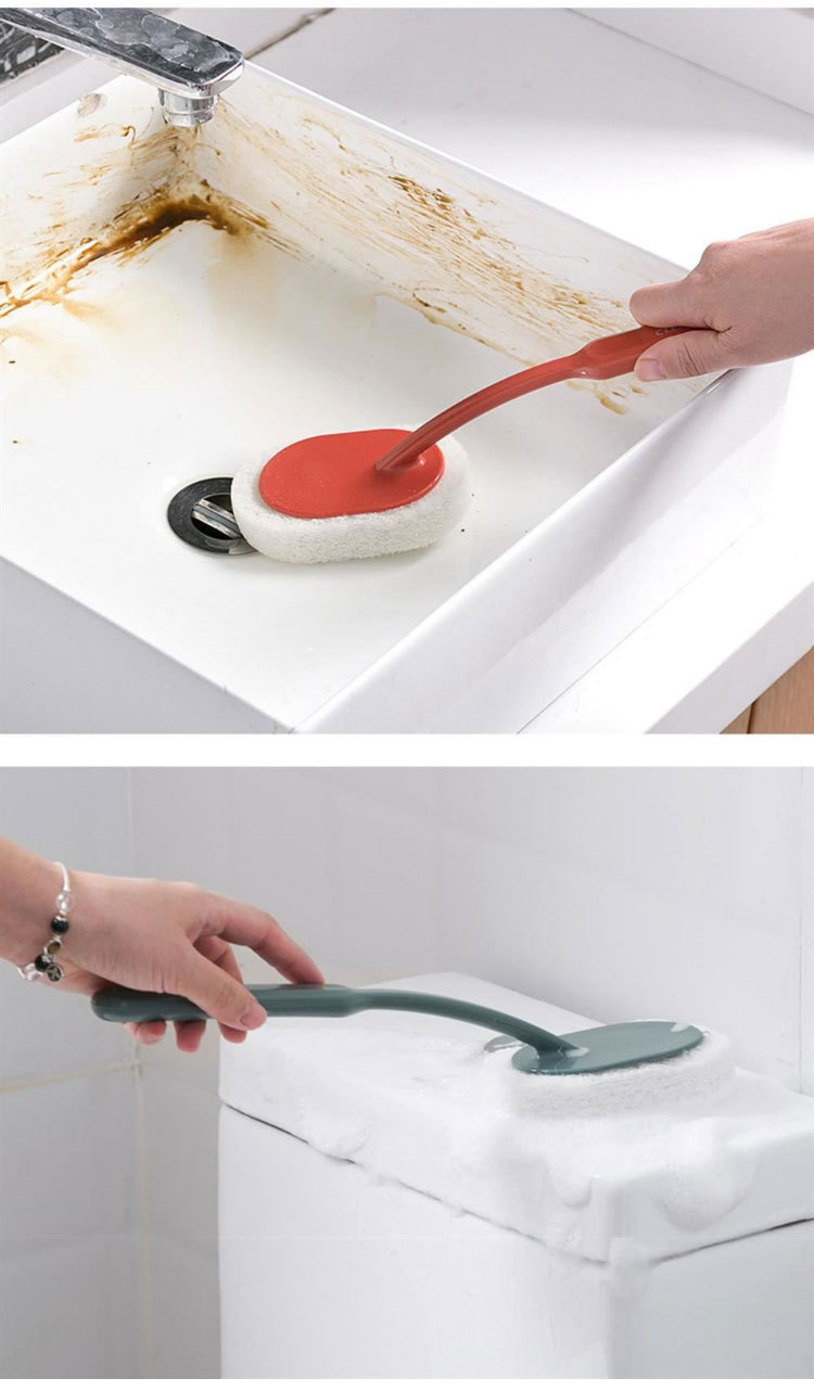긴 손잡이 스펀지 브러시 화장실은 두꺼운 스크러링 패드 목욕 브러시 욕실 바닥 타일 먼지 청소 브러시