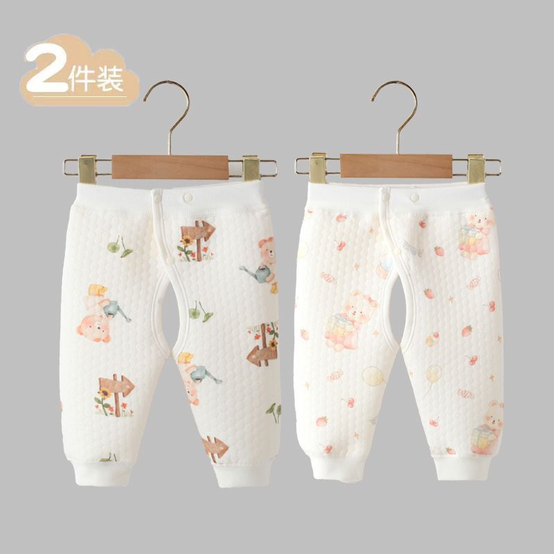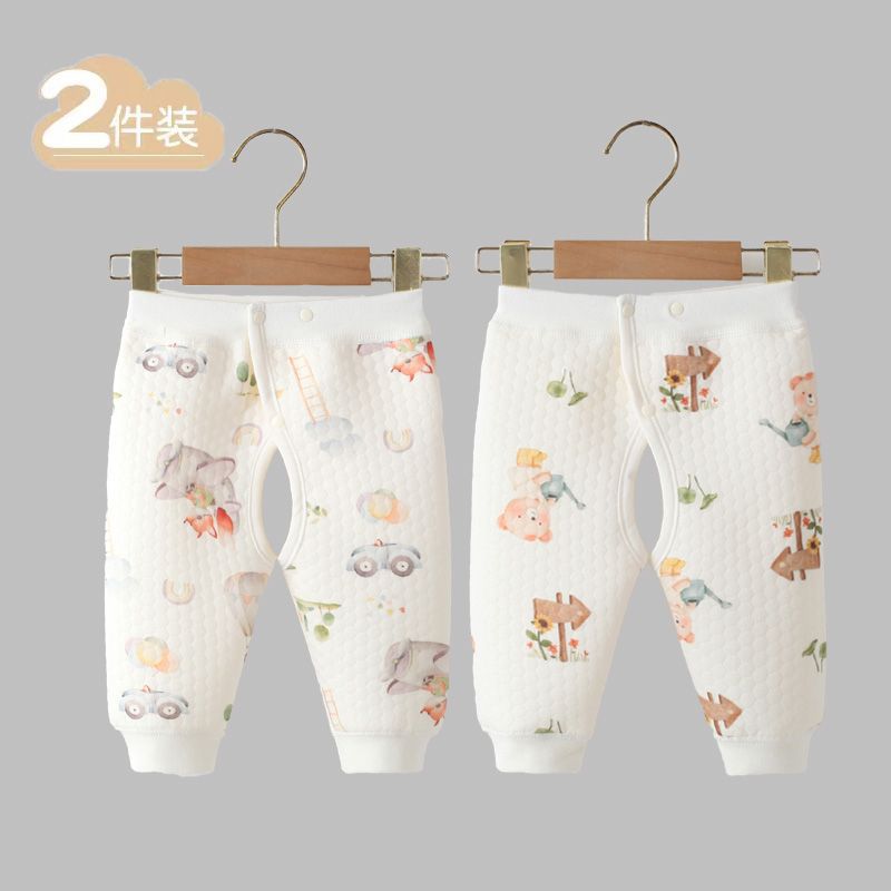 아기 클래스 순수한 면 따뜻한 바지 3 층 두꺼운 공기 면 바지 어린 아이들의 가을과 겨울 오픈 크로트 아기 바지