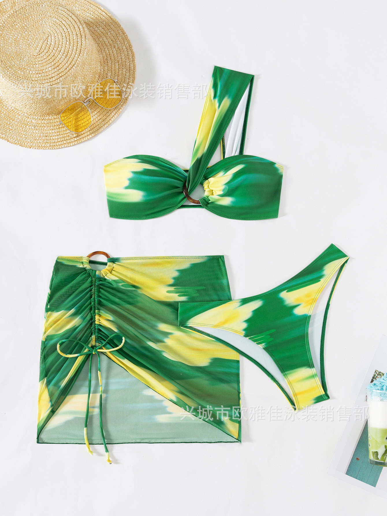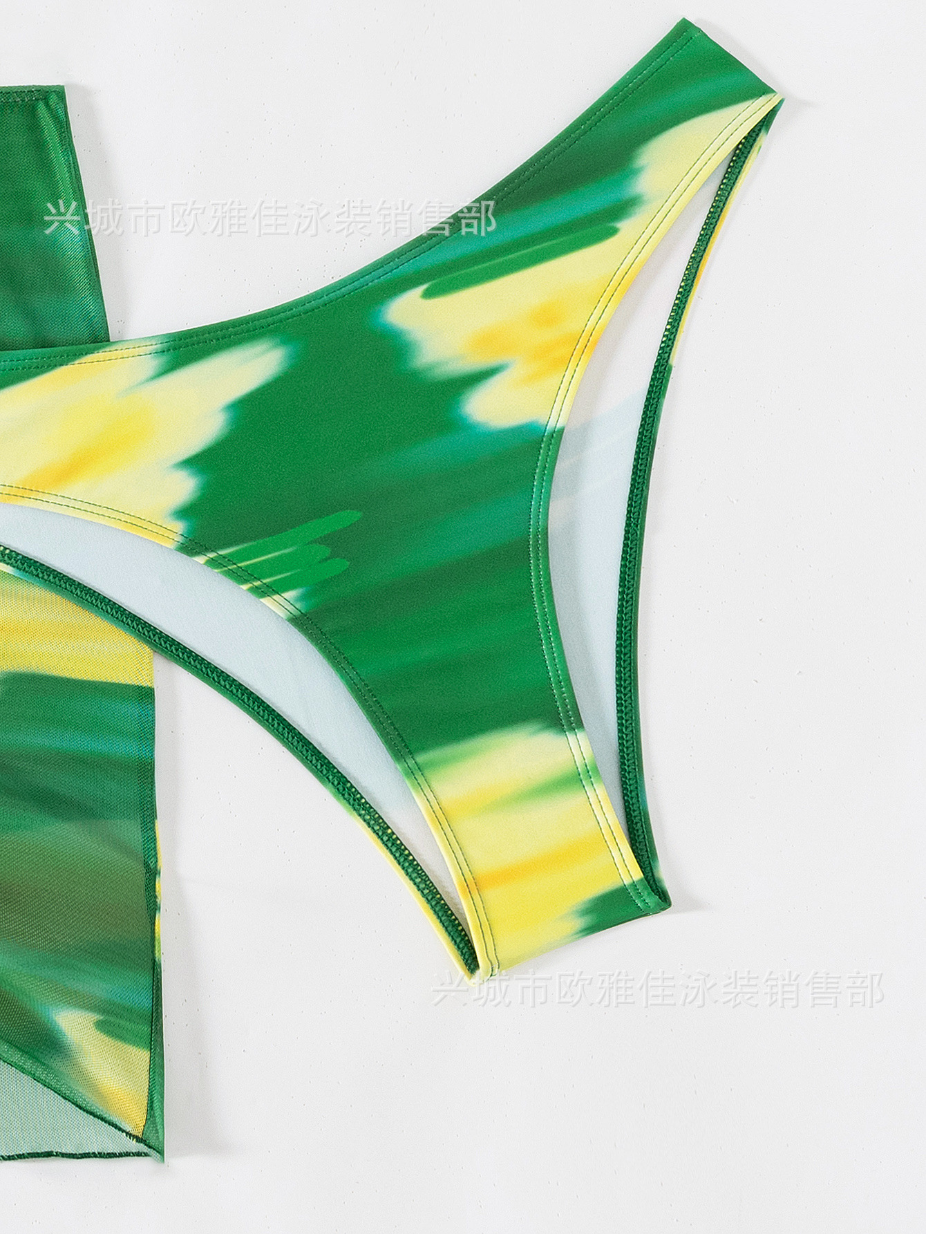 유럽과 미국의 스플릿 섹시 프린트 비키니 메쉬 스커트 스트랩리스 원 숄더 수영복스토어 가기