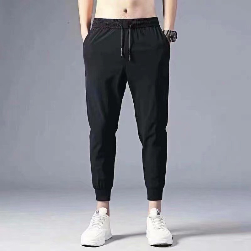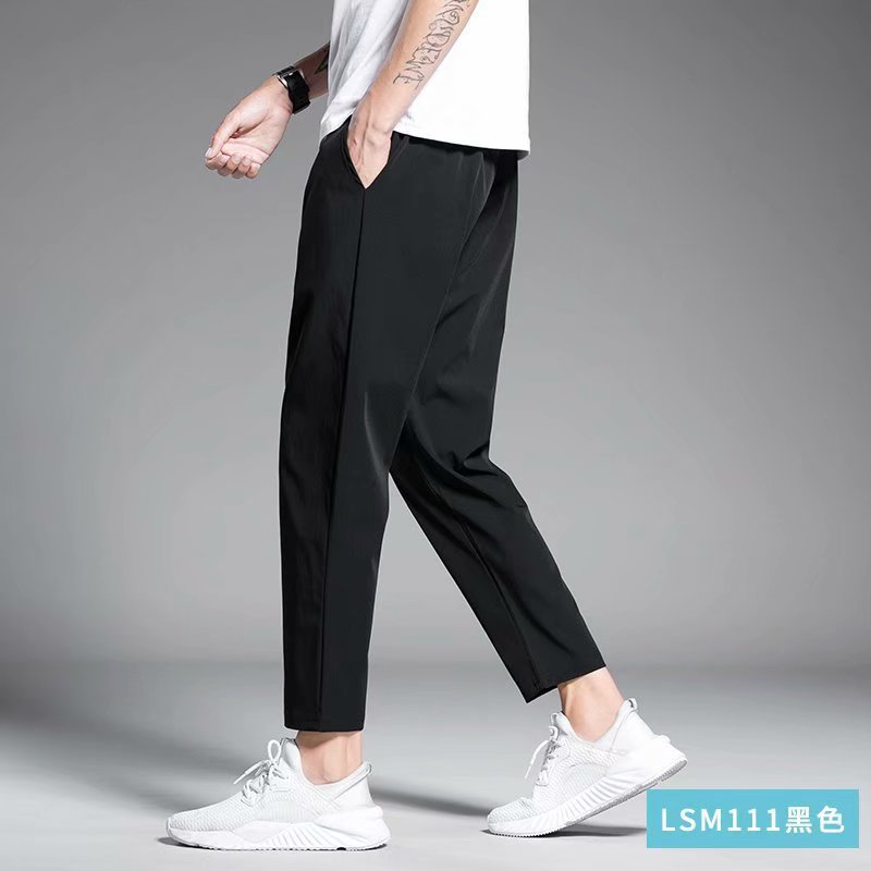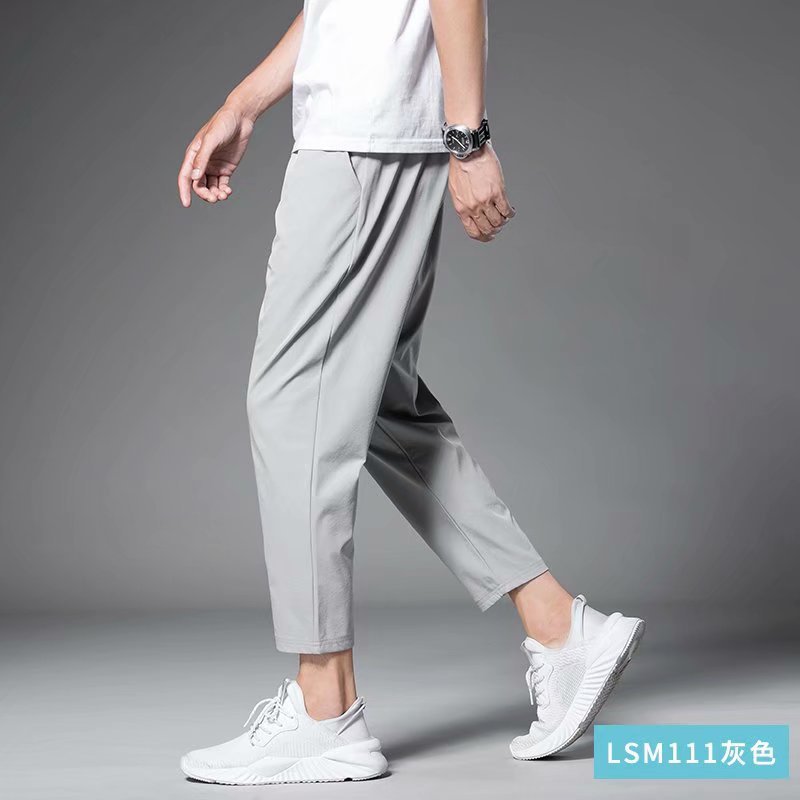 남자 바지 여름 아이스 실크 얇은 자른 캐주얼 바지 남자 루즈 스트레이트 트렌디 올 매치 크롭 팬츠 남성복스토어 가기