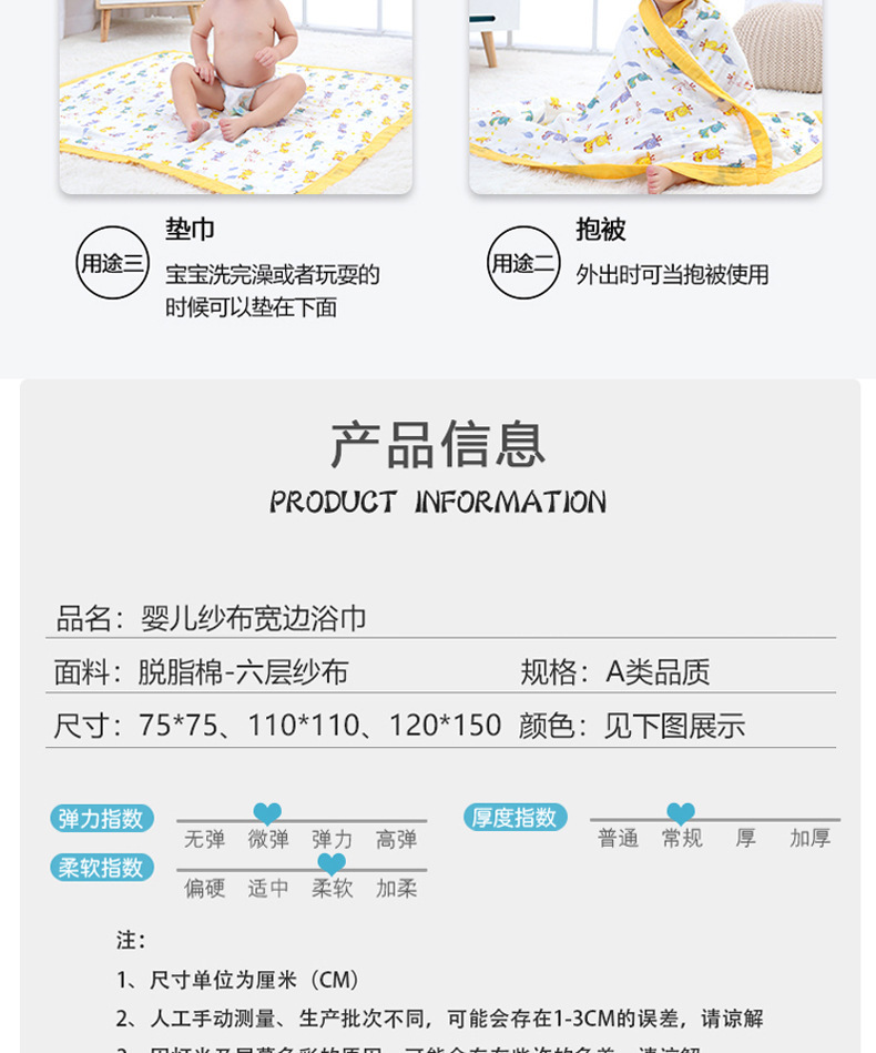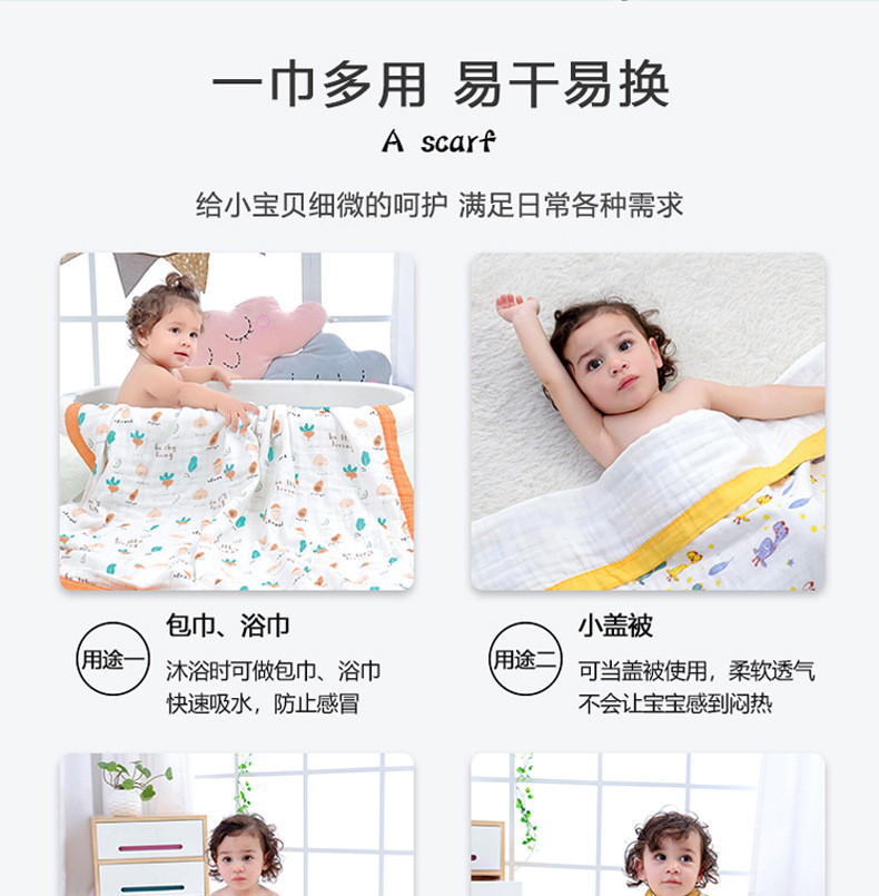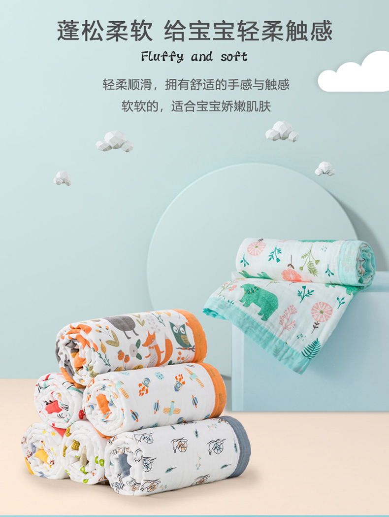 6겹 고밀도 거즈 목욕 타월, 넓은 가장자리 버블 아기 신생아 목욕 타월, 담요, 포대용 이불, 프린트 디자인스토어 가기