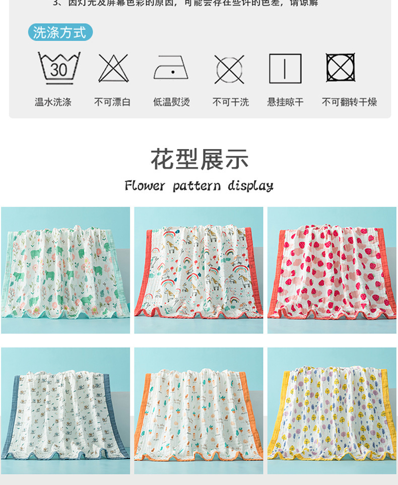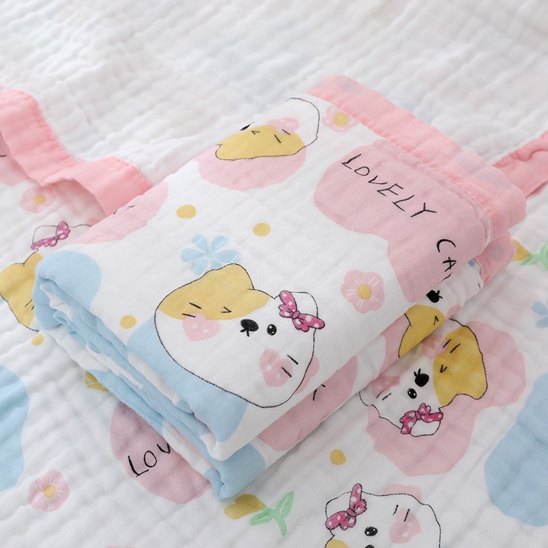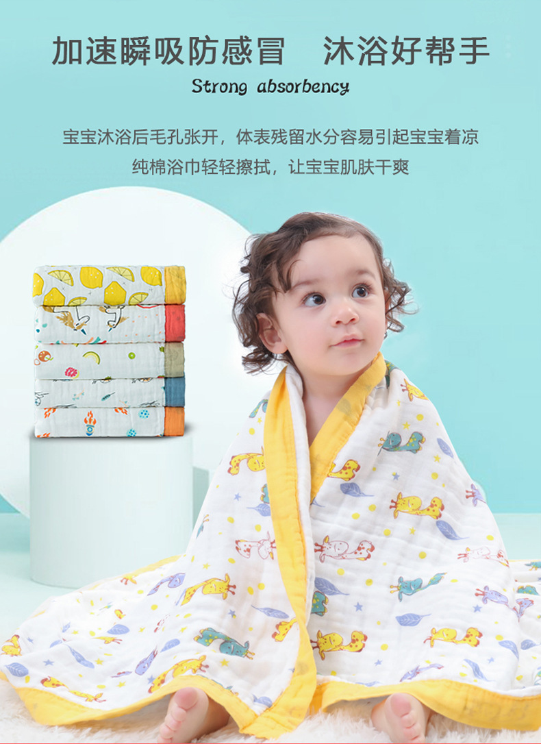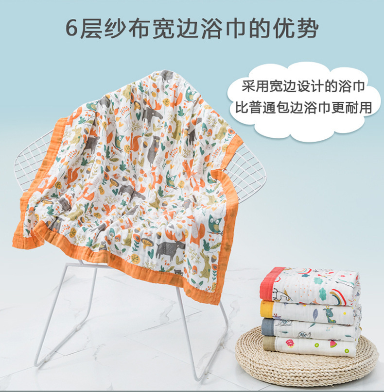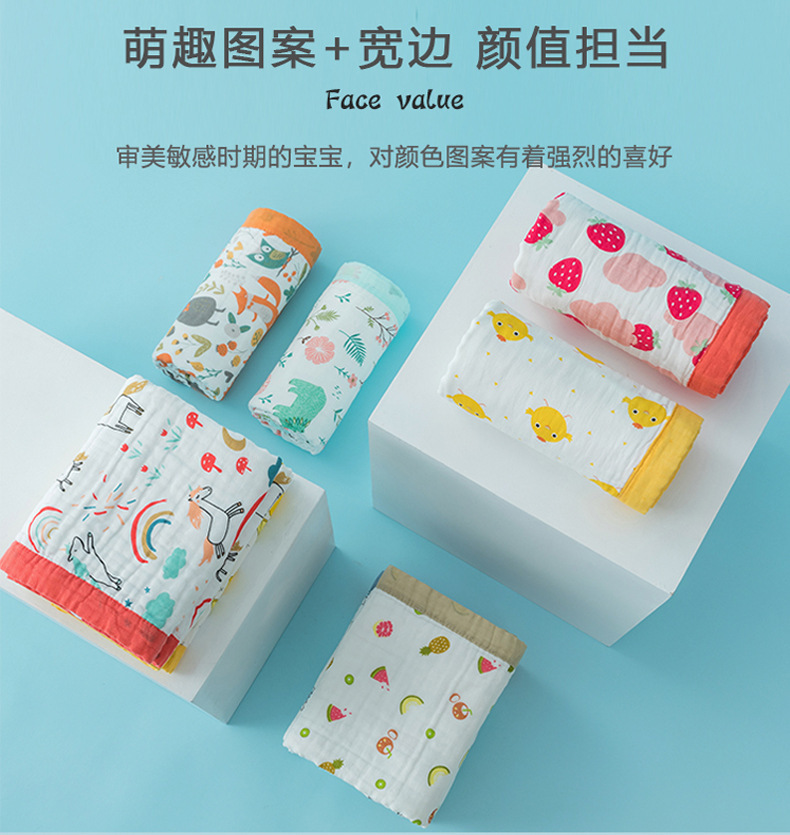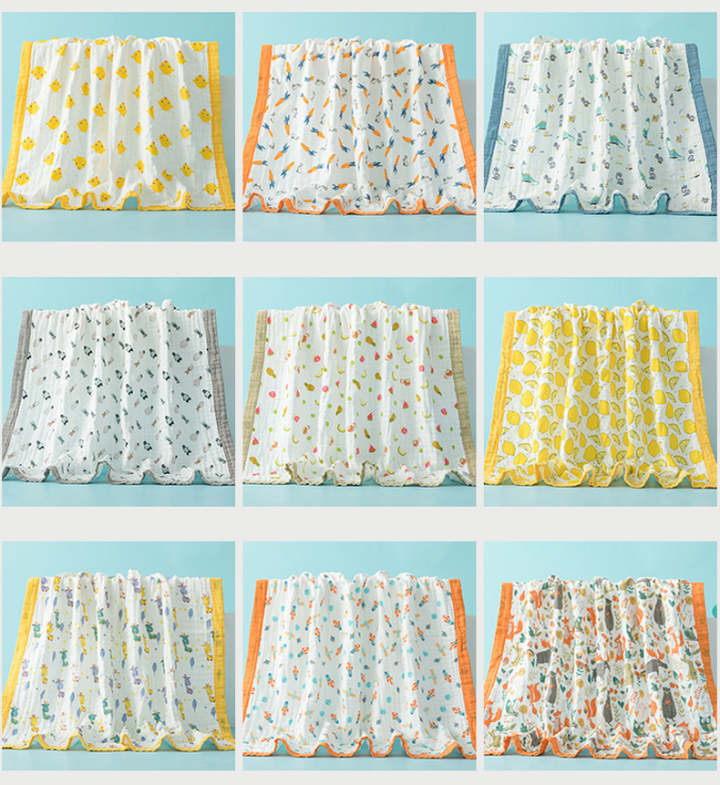 6겹 고밀도 거즈 목욕 타월, 넓은 가장자리 버블 아기 신생아 목욕 타월, 담요, 포대용 이불, 프린트 디자인
