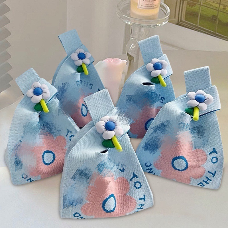 새로운 결혼식 동반 선물 가방 귀여운 꽃 니트 가방 생일 선물 국경일 대용량 선물 핸드백스토어 가기