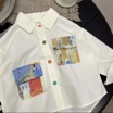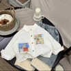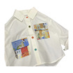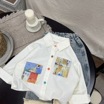 재미있는 낙서 ~ 한 팬 어린이 옷깃 서양식 컬러 버튼 소년 소녀 아기 긴 소매 카디건 셔츠 봄과 가을 조수