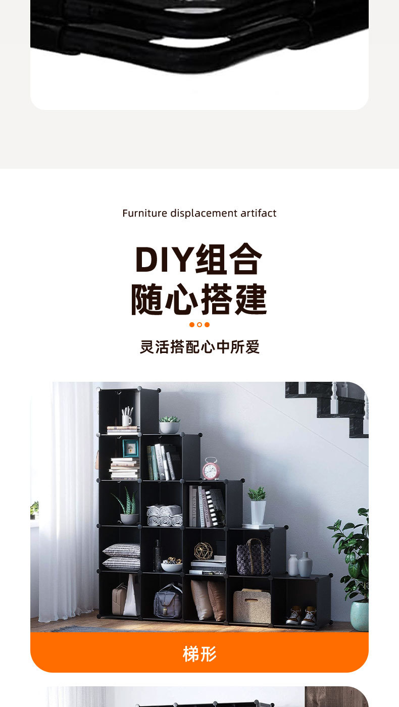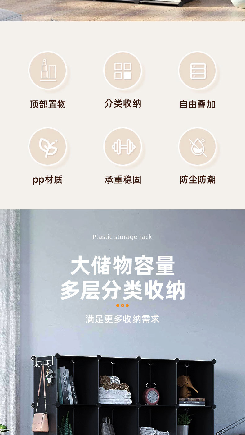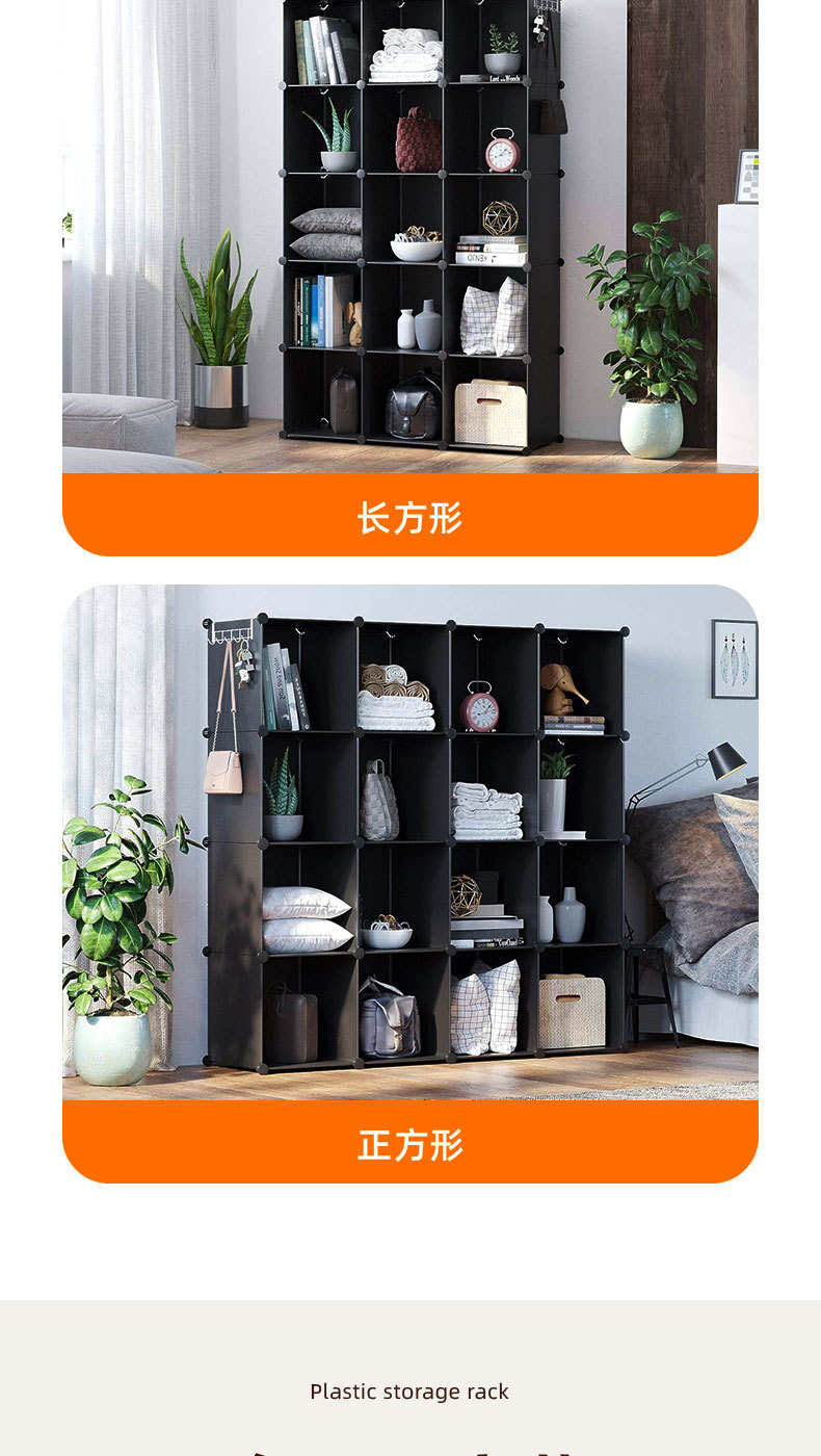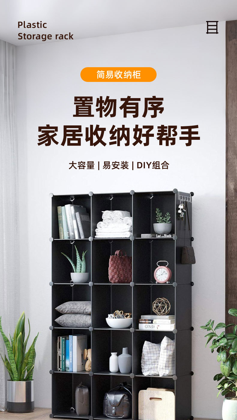 간편한 거실 수납장 다층 플라스틱 선반 다양한 크기의 옷 신발 수납장 조립형 콤비네이션 캐비닛